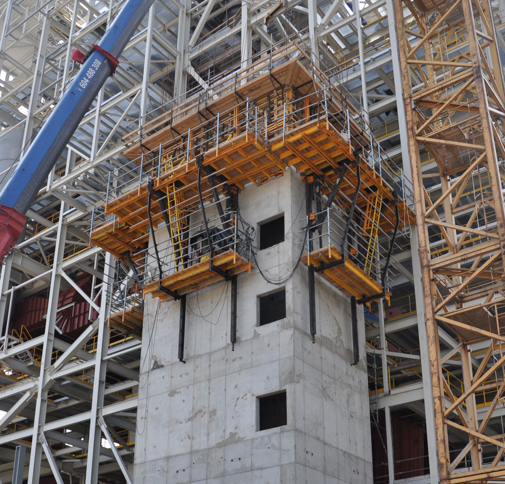 - Autonomía casi total con respecto a la grúa. Permite izado simultáneo de cimbra, plataformas de trabajo y distribuidor de concreto