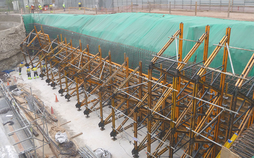 Sistema de cimbra diseñada para construir muros a una cara hasta una altura de 10,5 m, tanto para construcciones de edificación como de obra civil. Está basado en el Sistema MK, lo que confiere al producto máxima flexibilidad pudiendo realizar diferentes configuraciones. Además el sistema está optimizado para el transporte y apilado en obra y es compatible con todos los encofrados de muro de ULMA.