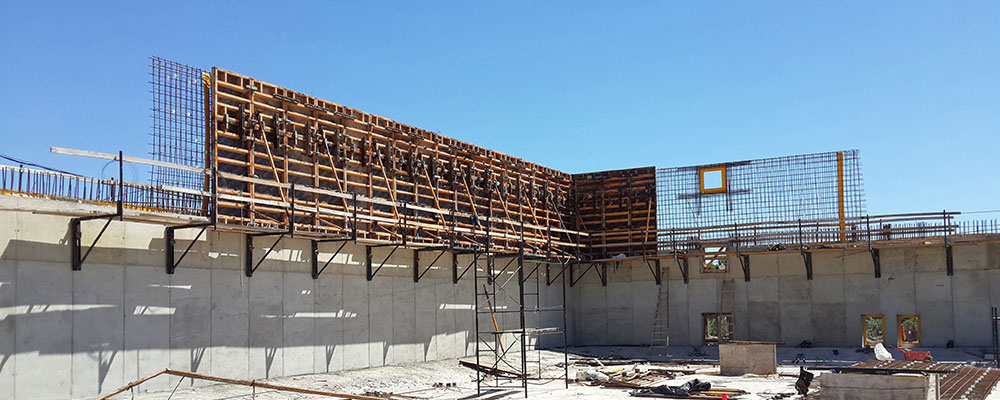 Sistema de seguridad enfocado a la construcción de muros de cierta altura, donde la ejecución de muro se realiza por fases. Estas plataformas de trabajo funcionan como apoyo para la cimbra y para realizar tareas posteriores como cerramientos o reparaciones en los muros ejecutados.