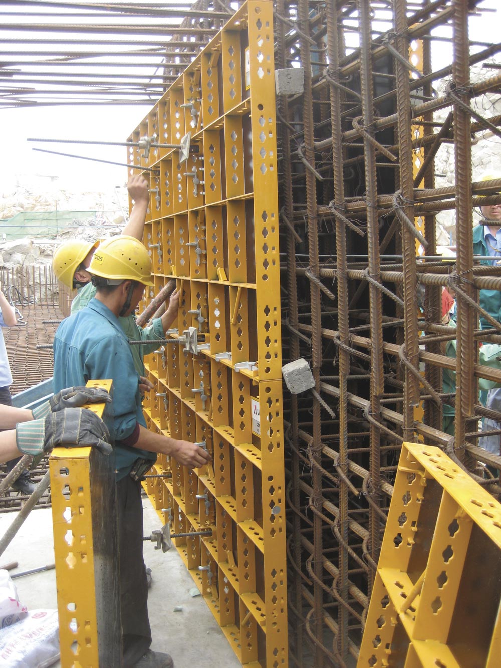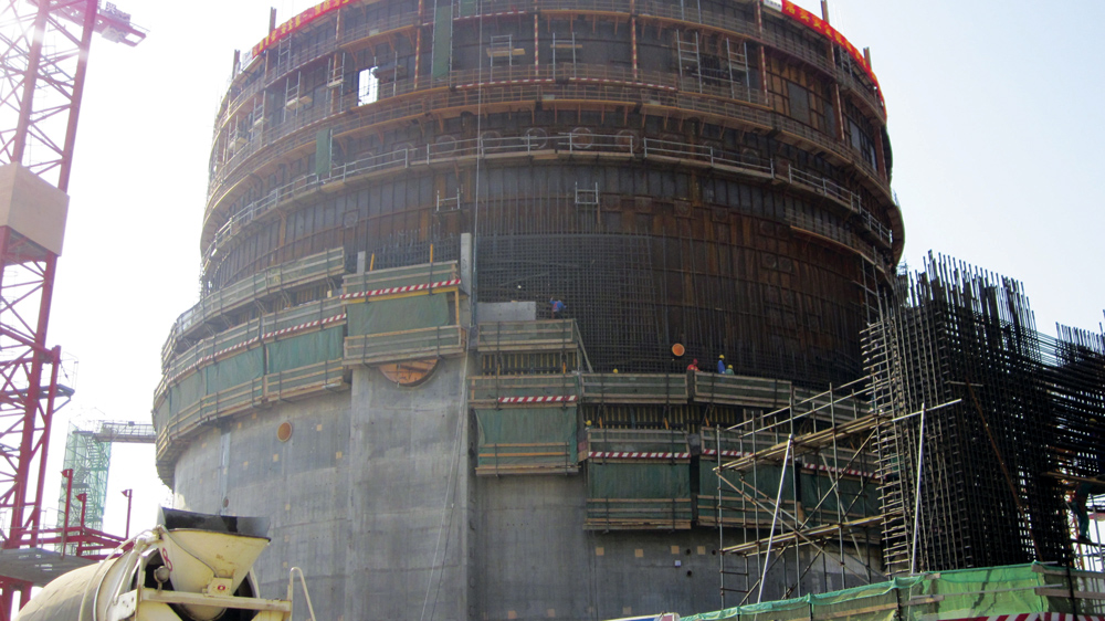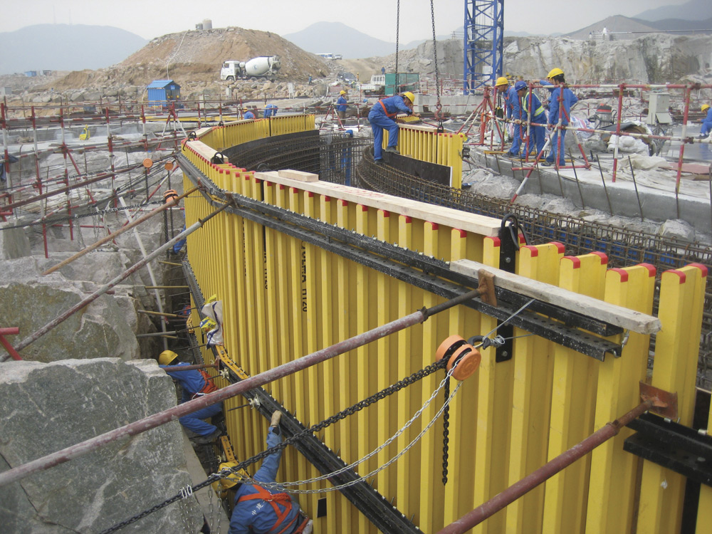 La cimbra vertical ENKOFORM V-100 ejecutó la cubierta del reactor con 80 paneles: 40 en parte interior y otros tantos en la exterior, con anchuras de entre 3.7 y 4.36 m, y altura de 3.6 m.