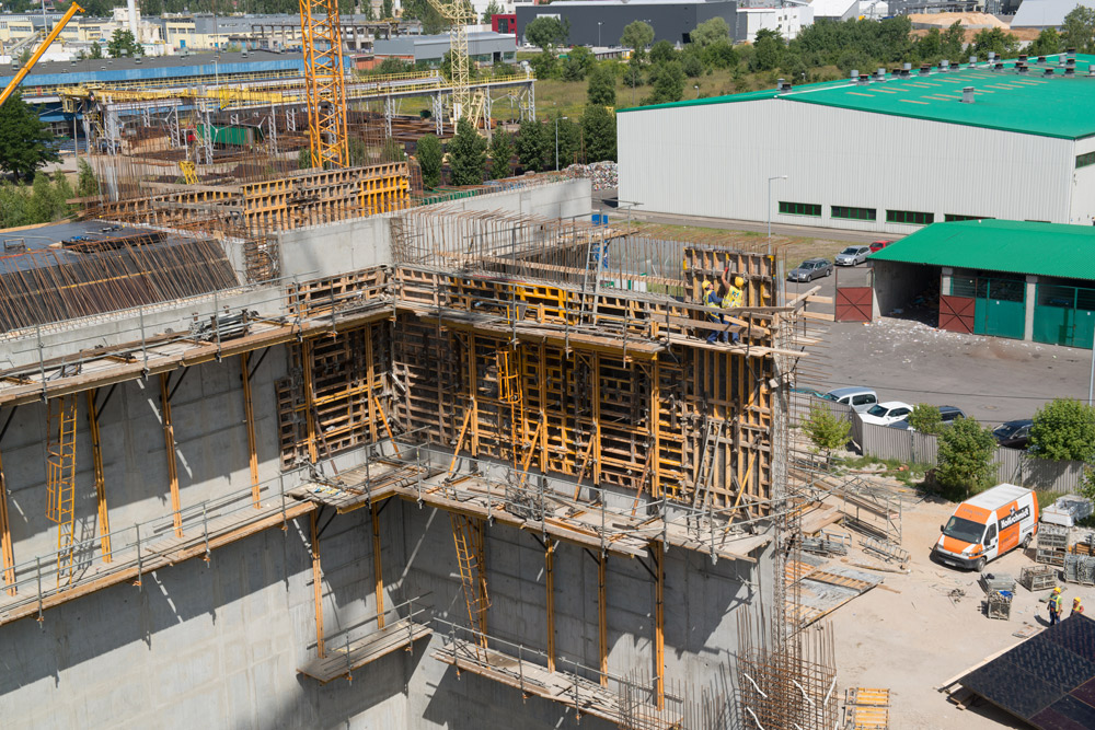 El bunker, la instalación más importante de la planta, tiene 45 m de altura, de los que 12 son subterráneos. Las primeras labores de cimbrado se han llevado a cabo en la losa de fundación con paneles ligeros COMAIN.