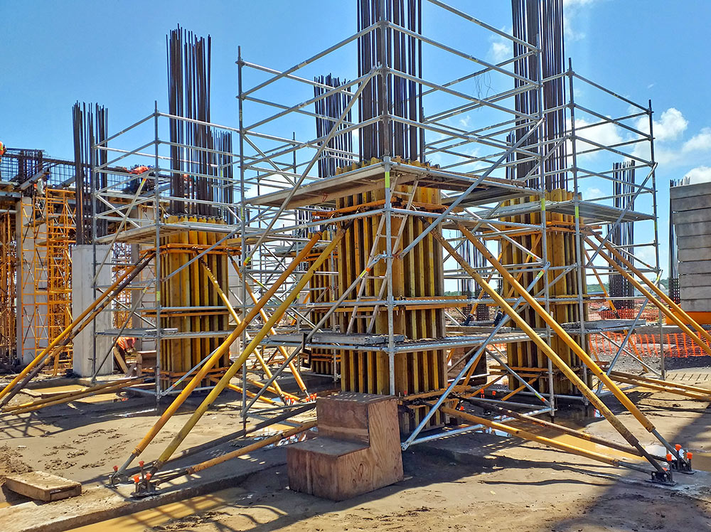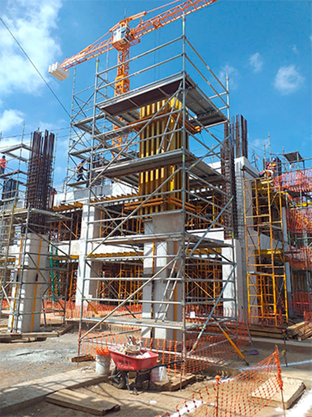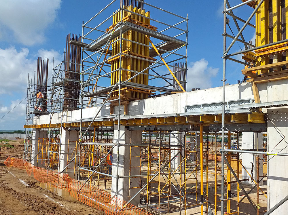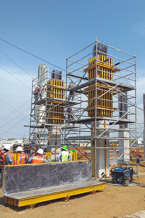 Dados los tiempos de ejecución, el proyecto demandaba un diseño de Ingeniería para el encofrado de columnas que permitiera soportar la presión de concreto generada por la velocidad de llenado y tuviese un acabado aparente de alta calidad, de esta forma brindamos seguridad, rapidez en la ejecución y se optimizaron recursos. La solución de columnas de concreto aparente se diseñó con los sistemas ENKOFORM V-100.