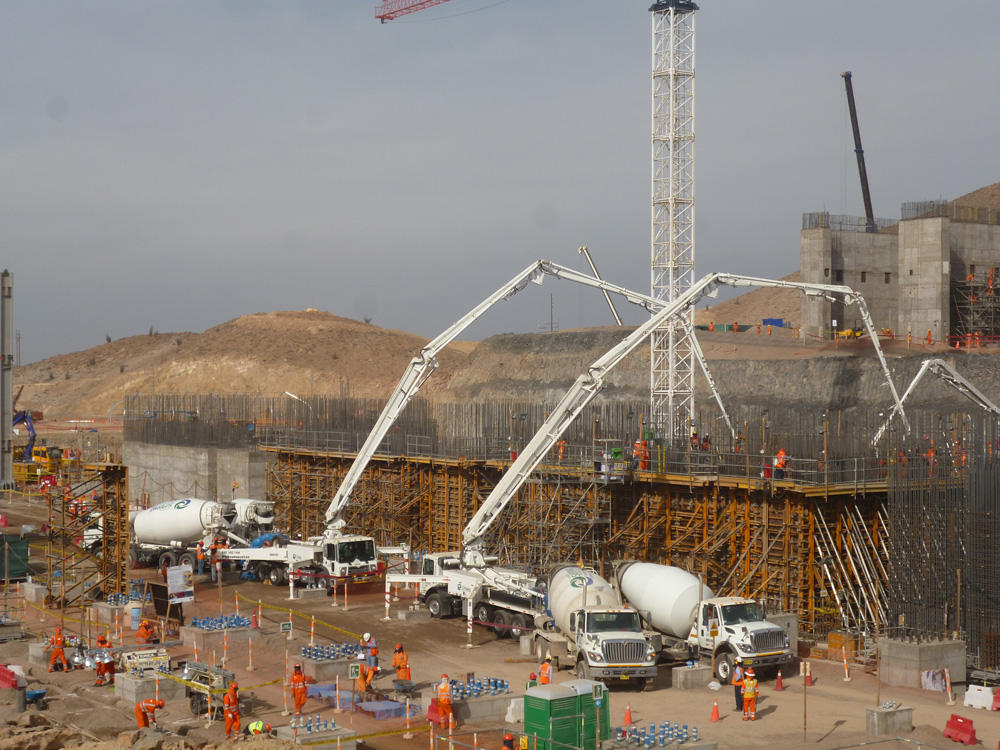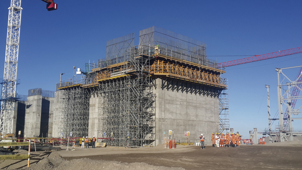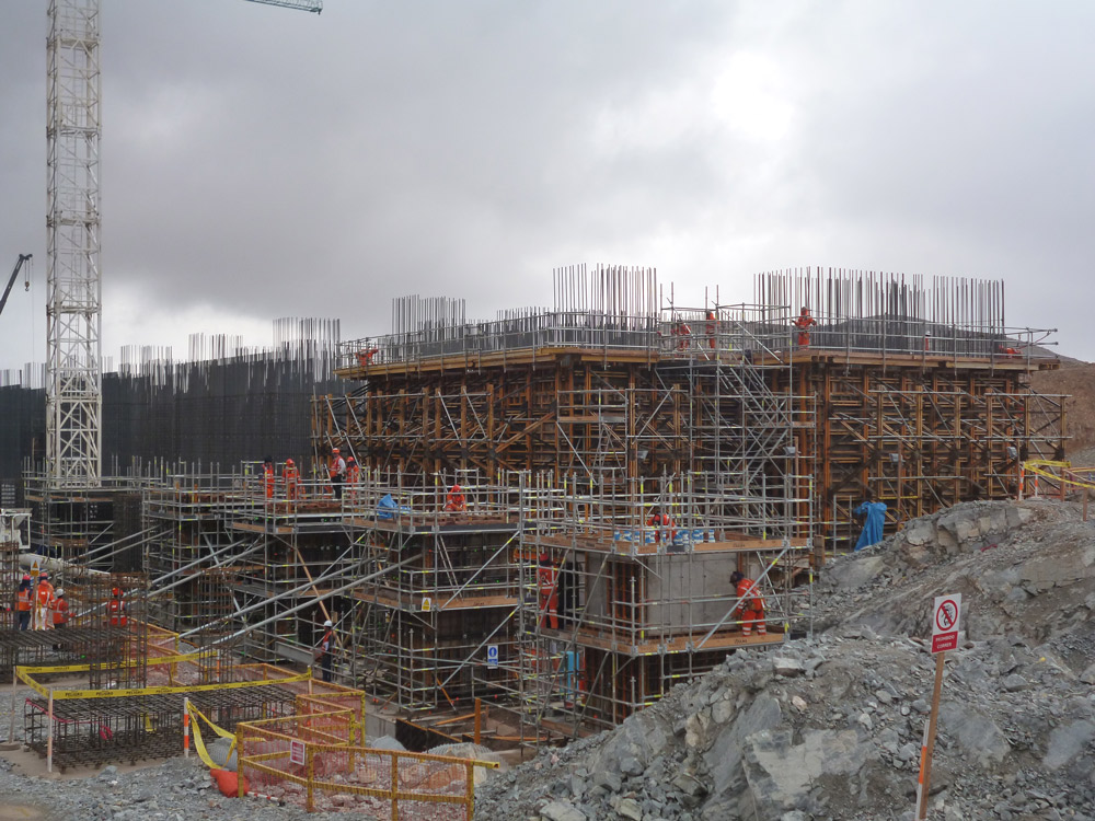 Para la construcción del molino, se instaló una losa de concreto reforzado de 2.50 m, para el cual se aplicó el sistema de cimbra modular ORMA. Debido a las fuerzas del viento se colocaron cargas horizontales, lo cual aumentó el peso de la estructura. La solución ofrecida por ULMA Encofrados Perú consistió en instalar el sistema de soporte de cargas verticales CIMBRA T-60 (formado por torres armadas con marcos y diagonales, capaz de soportar grandes pesos a altura) y amarrar las torres con tubos horizontales a 2 m de altura. Con esto cada torre aumentó en más de una tonelada su capacidad de carga, haciendo posible el soporte adecuado de la losa. Dada su facilidad de manipulado, fue premontada por los operarios y luego izada usando una grúa.