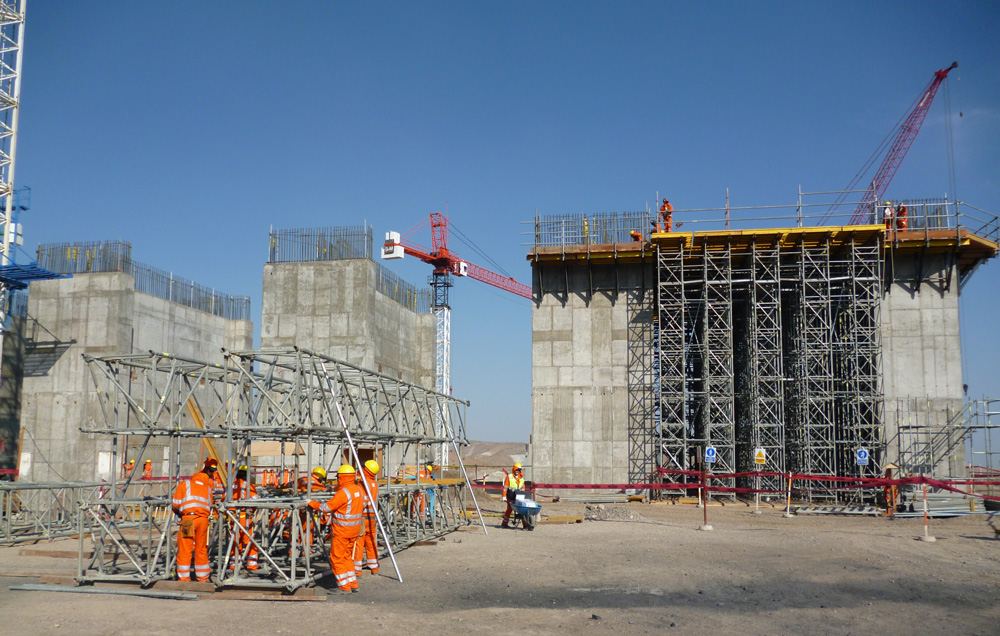 El sistema de cimbra modular ORMA fue usado para las cimbras de las diferentes estructuras, pues se requería un sistema capaz de soportar grandes presiones de concreto, con pocos accesorios, que pueda armarse en módulos para mejor manipulación.