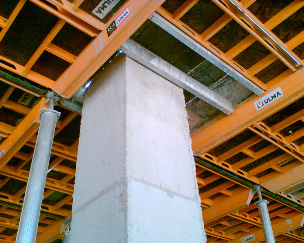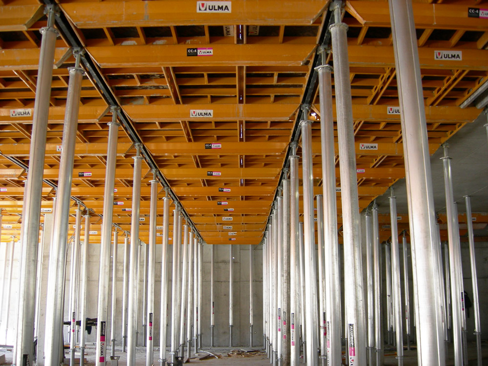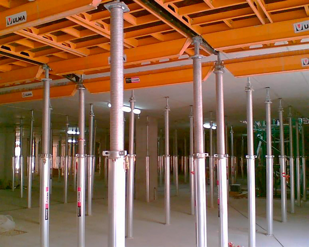 En cuanto a las características técnicas, se trata de una obra de volumen importante de un producto novedoso como es la Cimbra de Aluminio CC4, que se utilizó para el cimbrado de losas. Para el apuntalamiento de la Cimbra Horizontal CC4 resultó idóneo la utilización del ALUPROP, debido a las grandes cargas a soportar y alturas para las que otros puntales no eran los adecuados. Así, se cubrieron incluso dobles alturas, en las que se utilizó doble Puntal amarrado, tal y como permite el sistema. Como resultado se consiguió un alto nivel de acabado y rendimiento en obra.