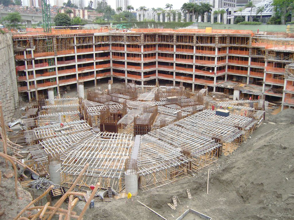 La Cimbra G facilitó el apuntalamiento de grandes alturas y posibilitó el descimbrado temprano de las losas para reutilizar el mismo material en fases sucesivas. La cimentación se ejecutó con la cimbra manuportable COMAIN.
