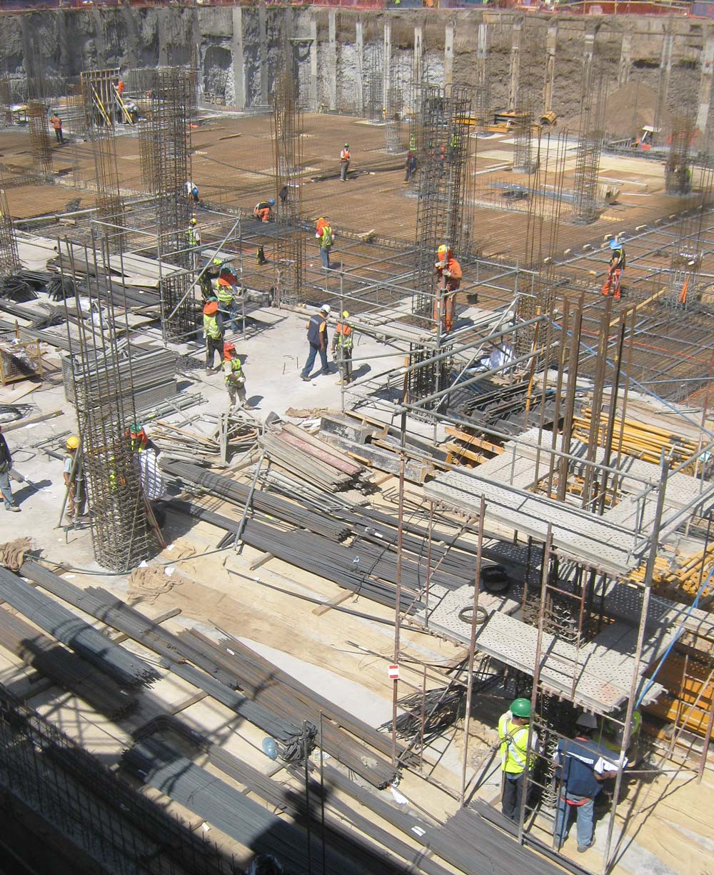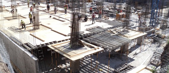 Las losas postensadas se instalaron mediante el sistema de vigas metálicas BTM apuntaladas con Puntales SP. El apuntalamiento de la zona de acceso de gran altura se acometió con la Cimbra T-60. Con torres de fácil montaje y pocos elementos, estos sistemas fueron de gran aceptación en la obra, por la facilidad para superar desniveles en la cota inferior y por su gran rentabilidad.