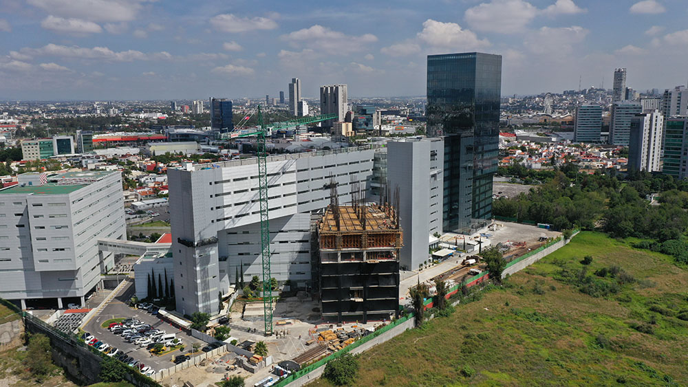 La ejecución comenzó en 2023 y consta de 21 niveles, cada uno con un área aproximada de 960 m². Con losas que en cada nivel proporcionaban a la fachada un diseño que parece girar, la solución estructural se centró en el uso de concreto, con sistemas de apuntalamiento que garantizaron la seguridad y la estabilidad de cada nivel.