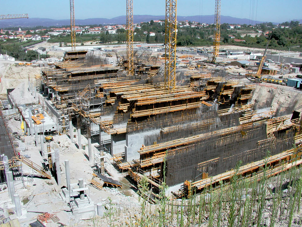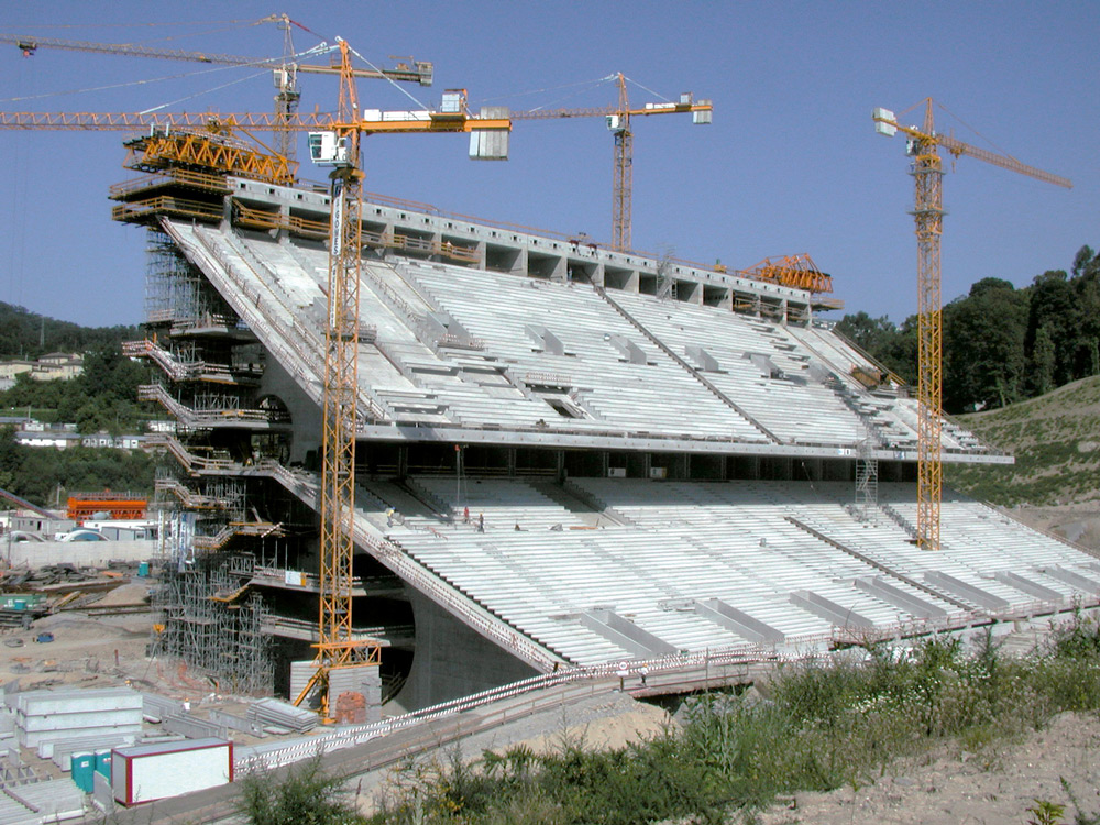 Proyectado sobre una cantera en desuso, el Estadio de Fútbol tiene un aforo de más de 30,000 espectadores. Consta de dos graderíos, "Nascente" y "Poente", en los laterales del campo de juego, y 3 galerías circulares que los atraviesan, además de dos plantas de estacionamiento bajo rasante. Su cubierta está formada por una trama de cables, con una luz de 220 m, que enlaza las dos tribunas.