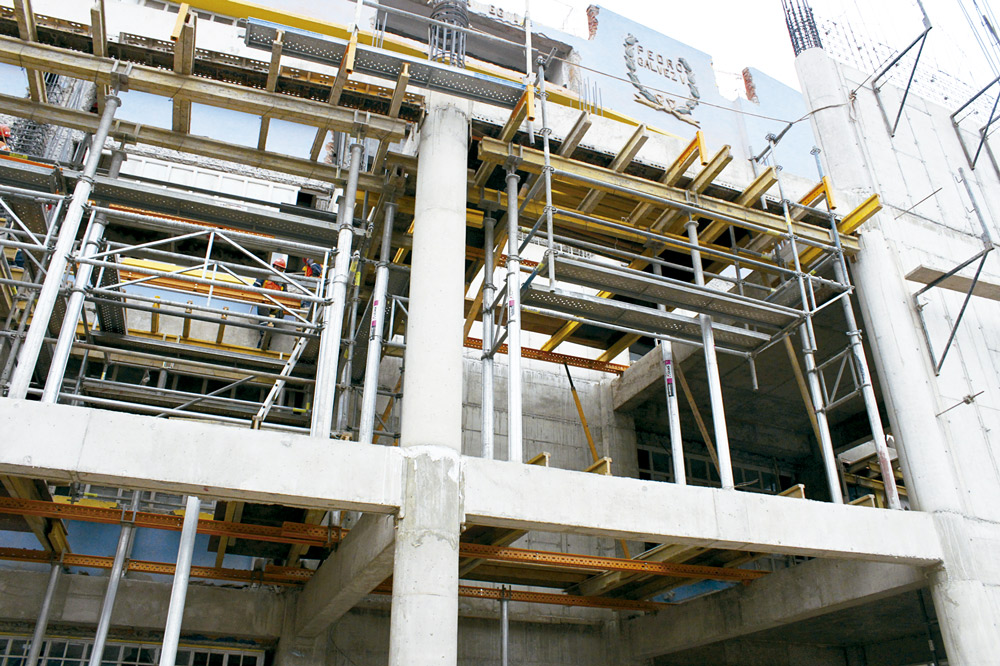 Las estructuras verticales se realizaron con cimbra manuportable COMAIN. Y gracias al andamio multidireccional BRIO, los trabajos en altura se efectúan con total seguridad.