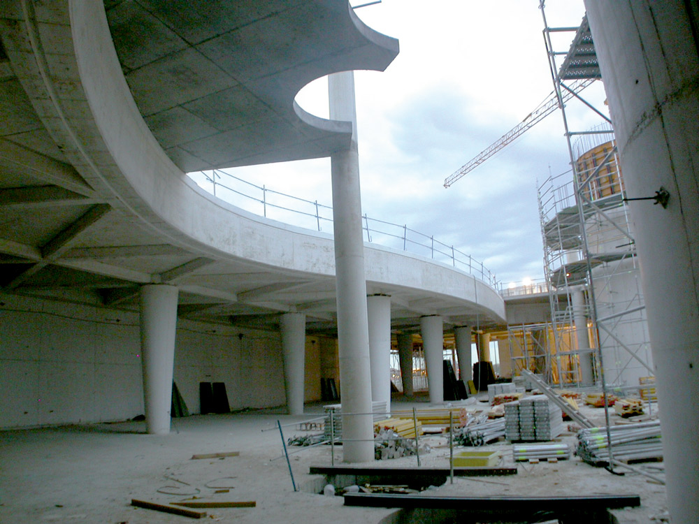 El Palacio de Congresos, adecuado para 1,500 espectadores, requirió de un acabado aparente de concreto. Para conseguirlo se empleó la Cimbra Vertical ORMA con fenólicos exclusivos para superficies blancas. La idea era conseguir una apariencia similar al mármol que fue posible gracias a unos encargados de obra con gran experiencia y formación. El resultado fue excepcional.
