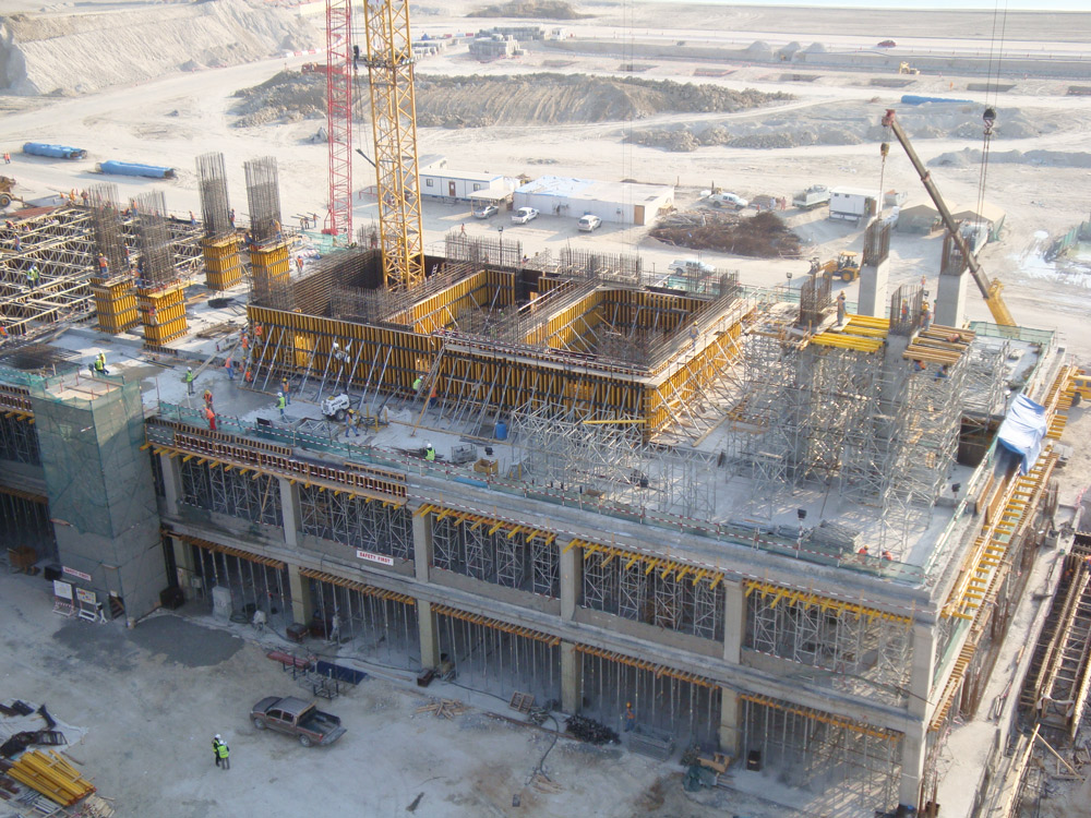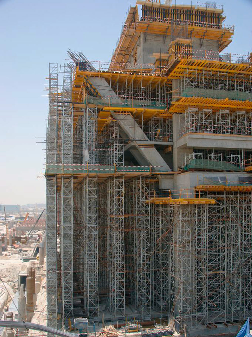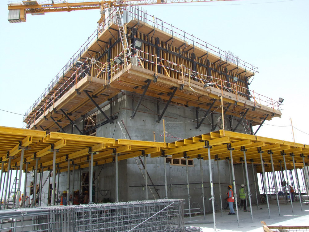 Los Puntales EP y la T-60 fueron los encargados de transmitir, de modo seguro, las cargas de las losas de concreto reforzado de 45 cm de espesor. La altura de las torres y su peculiar geometría, en ciertos casos inclinada, requirió de soluciones particulares. De ahí que el equipo de ingenieros resolviese la distribución de cargas con torres de T-60 que llegaron a alcanzar los 45 m. En todo momento la seguridad del equipo y de los operarios estuvo garantizada.