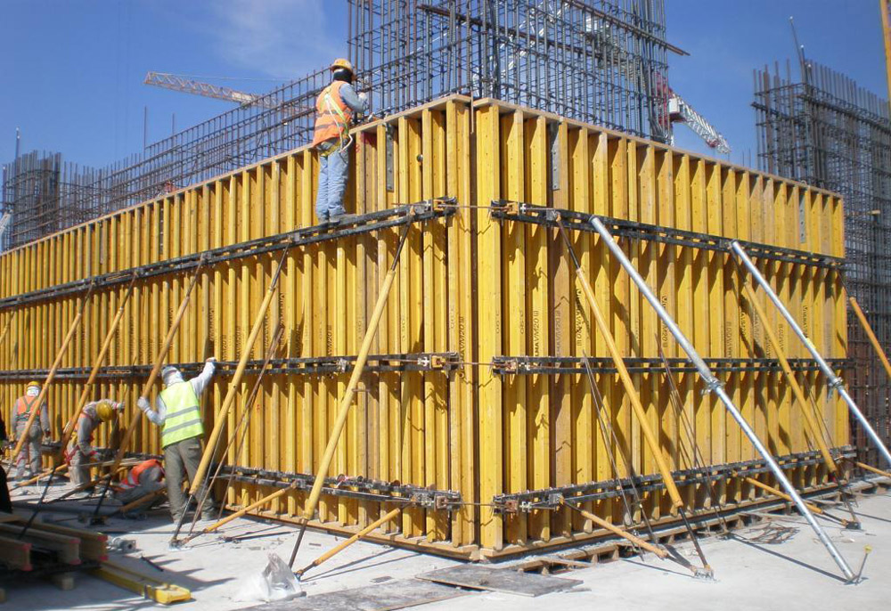 El empleo de sistemas modulares, y de fácil montaje, permitió reducir los tiempos de cimbrado de losas. Con las Mesas VR se llevaron a cabo las plantas típicas con losas de hasta 45 cm. Demostró su altos rendimientos de ejecución ya que se montó al inicio de la obra y se trasladó, sin desmontar, a las distintas puestas. Asimismo para las plantas inferiores y para los remates se empleó ENKOFLEX ya que gracias a su versatilidad solucionó diferentes tipos de losa y alturas.