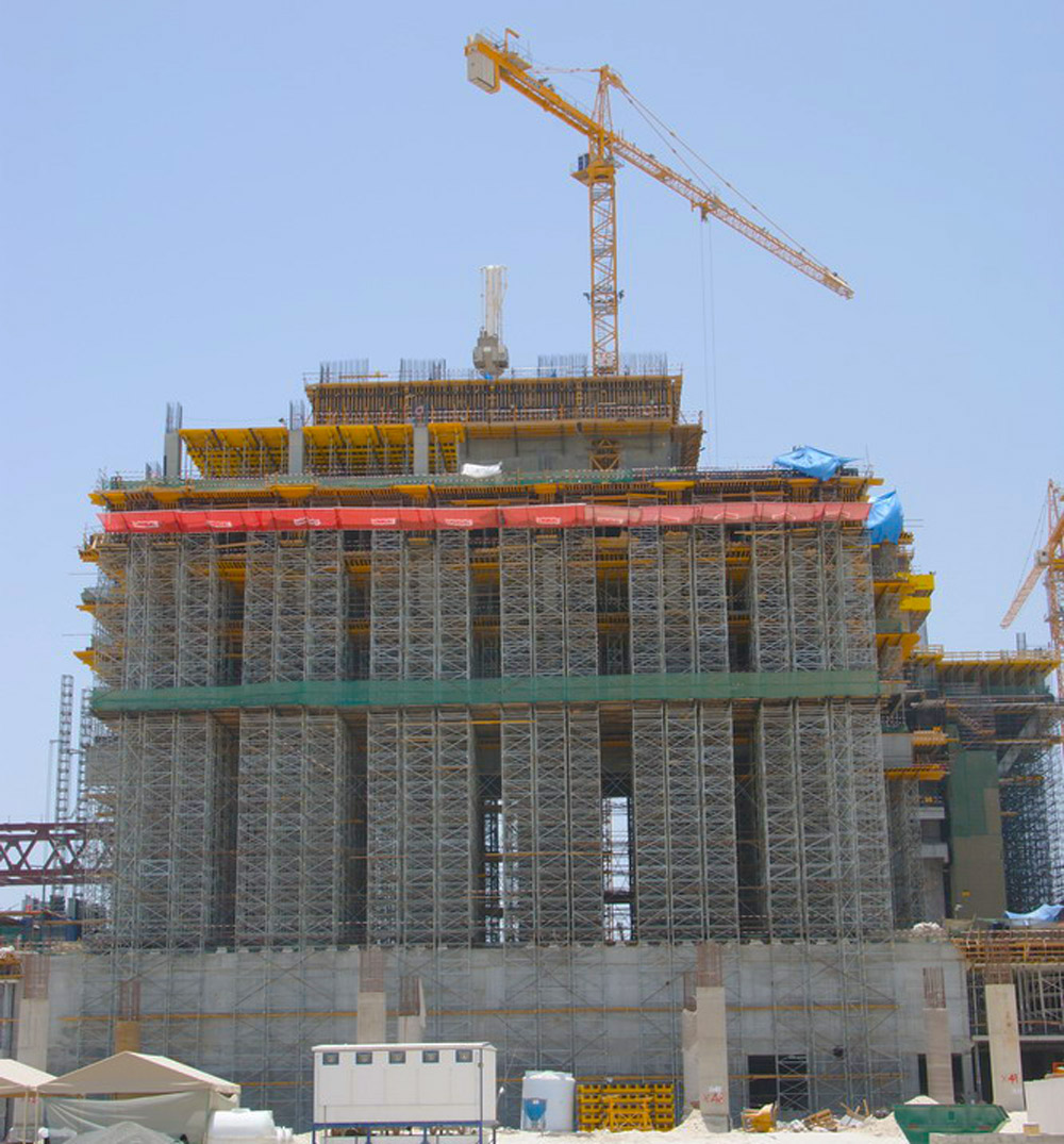 Para las ejecuciones en altura, como las estructuras del núcleo, se utilizaron sistemas convencionales de trepado. Sus plataformas de trabajo dispusieron de suficiente espacio para realizar todas las tareas y proporcionar a la vez una gran seguridad en todas las fases de ejecución.
