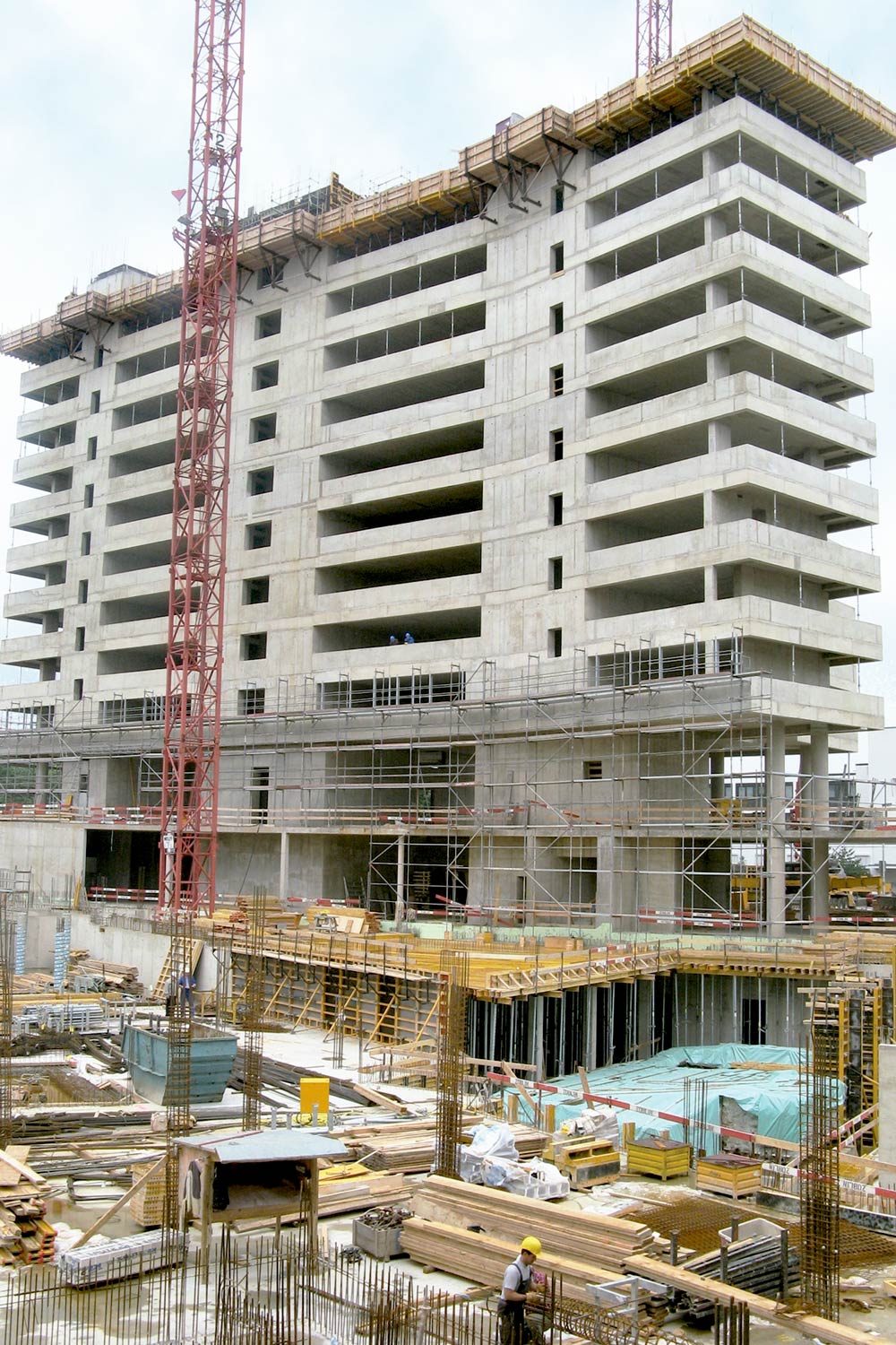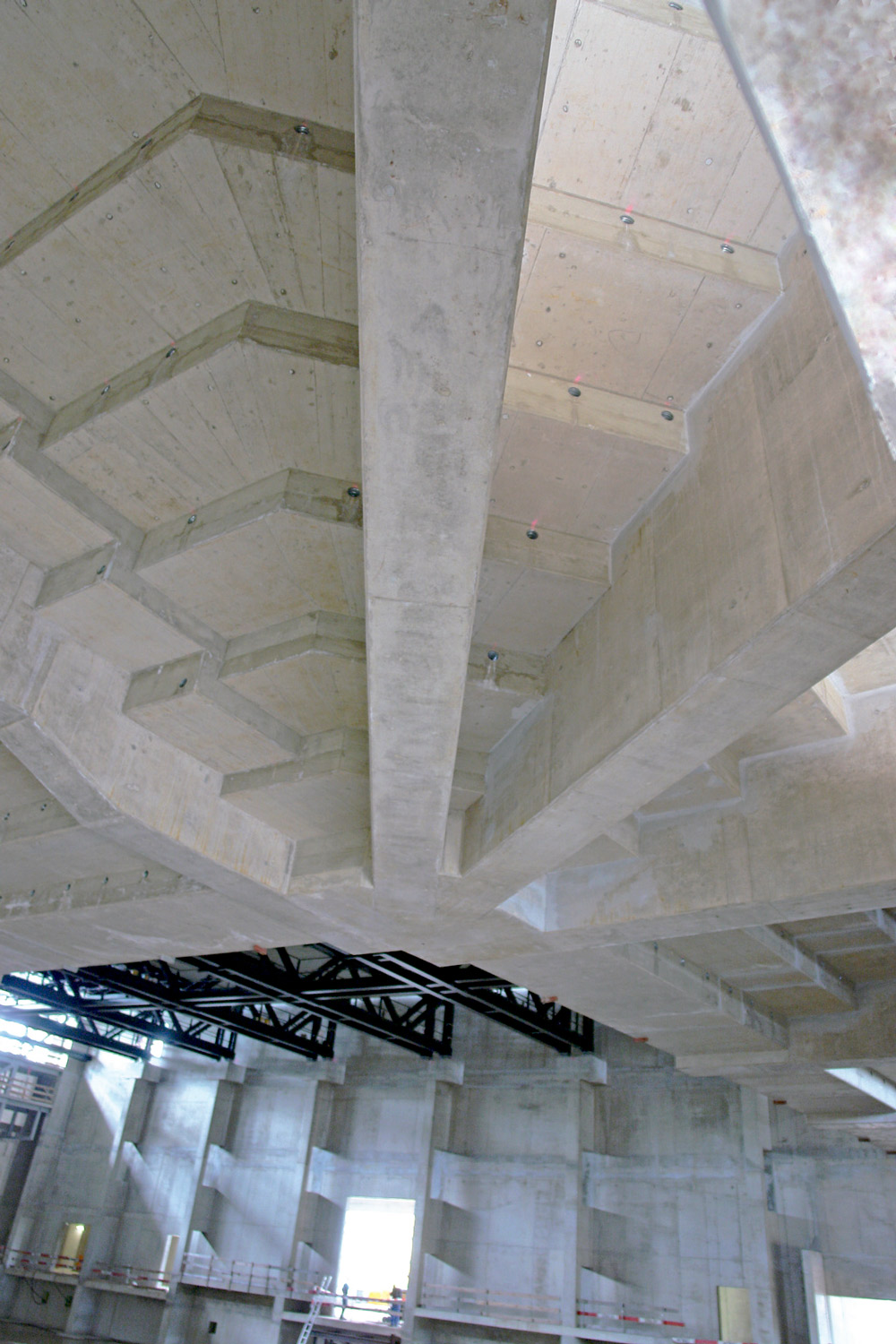 Un edificio de estas magnitudes necesitó del producto más adecuado para cada solución: Cimbra ORMA para la ejecución de muros, Mesas VR para la losa y estructuras de T-60 como sistema de transmisión de cargas. Estos sistemas proporcionaron, en todo momento, el acabado de concreto aparente requerido en obra y su adaptación a las diferentes geometrías.