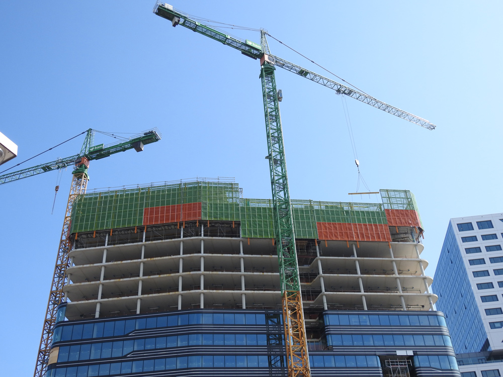 El sistema HWS además de ser ligero, 41 kg/m², no ha requerido estar anclado al muro. En este caso se ha izado con grúa, panel a panel, con un sistema de guiado mediante cabezales unidos a la losa. Los paneles HWS han cubierto de forma parcial el perímetro de la segunda planta y completamente, desde la cuarta hasta los 70 m de altura.