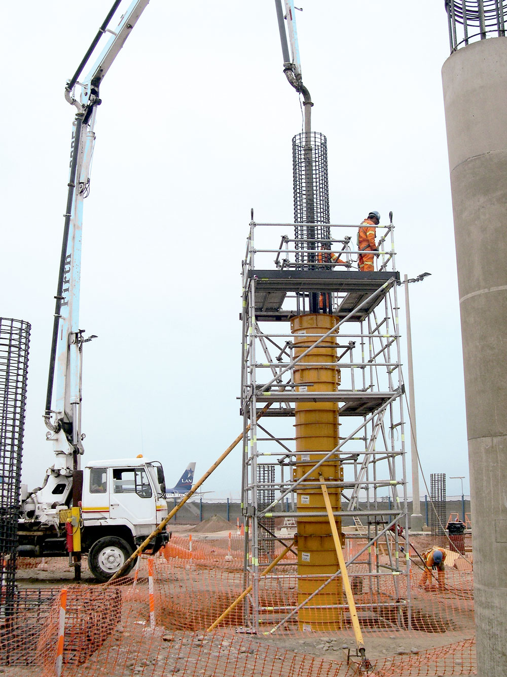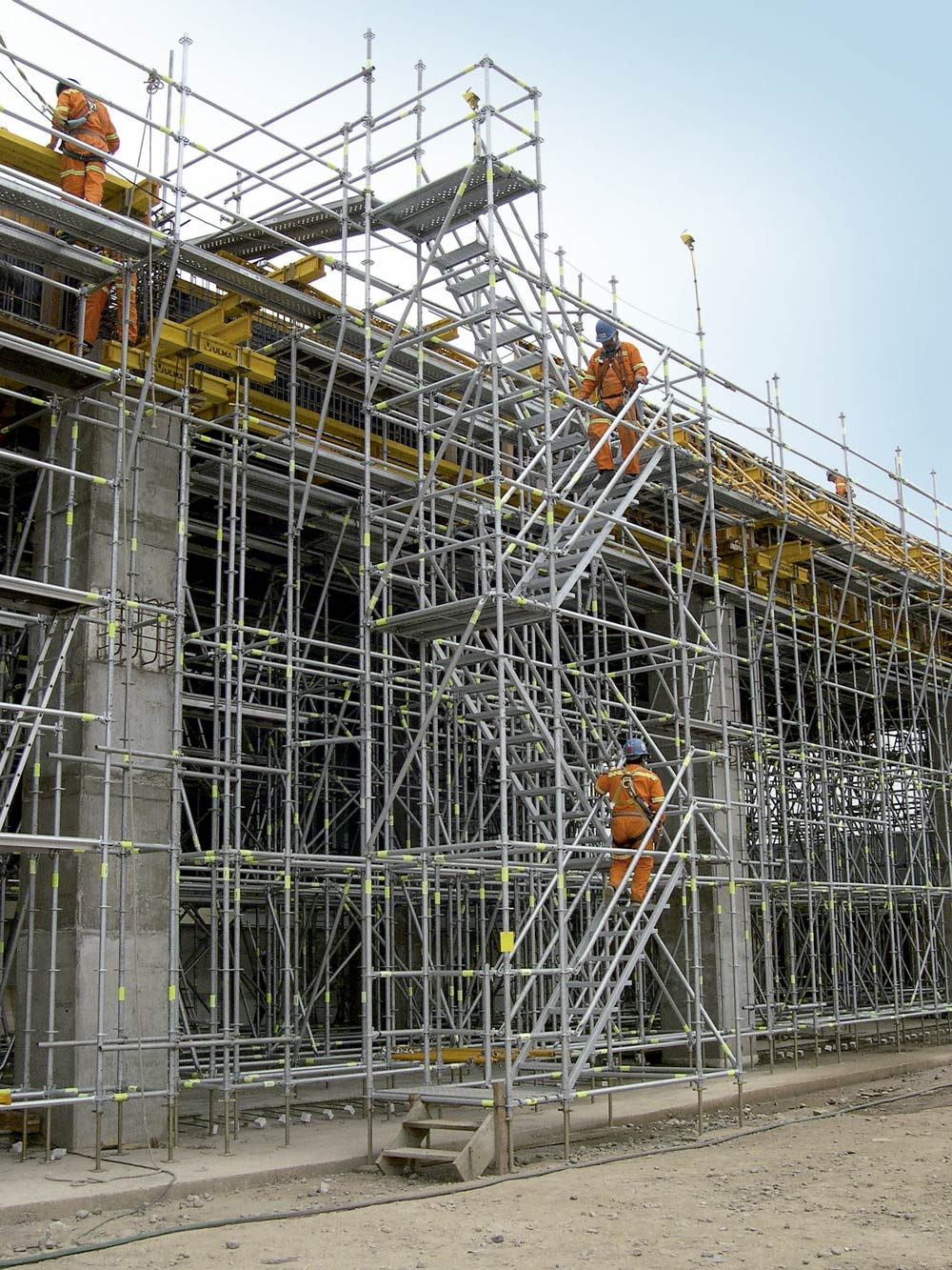 El sistema CLR se empleó en las columnas de sección circular, logrando un perfecto acabado de concreto aparente. TodAs las cimbras de columnas se equiparon de plataformas BRIO para el colado, permitiendo a los operarios realizar las tareas de una forma rentable y segura.