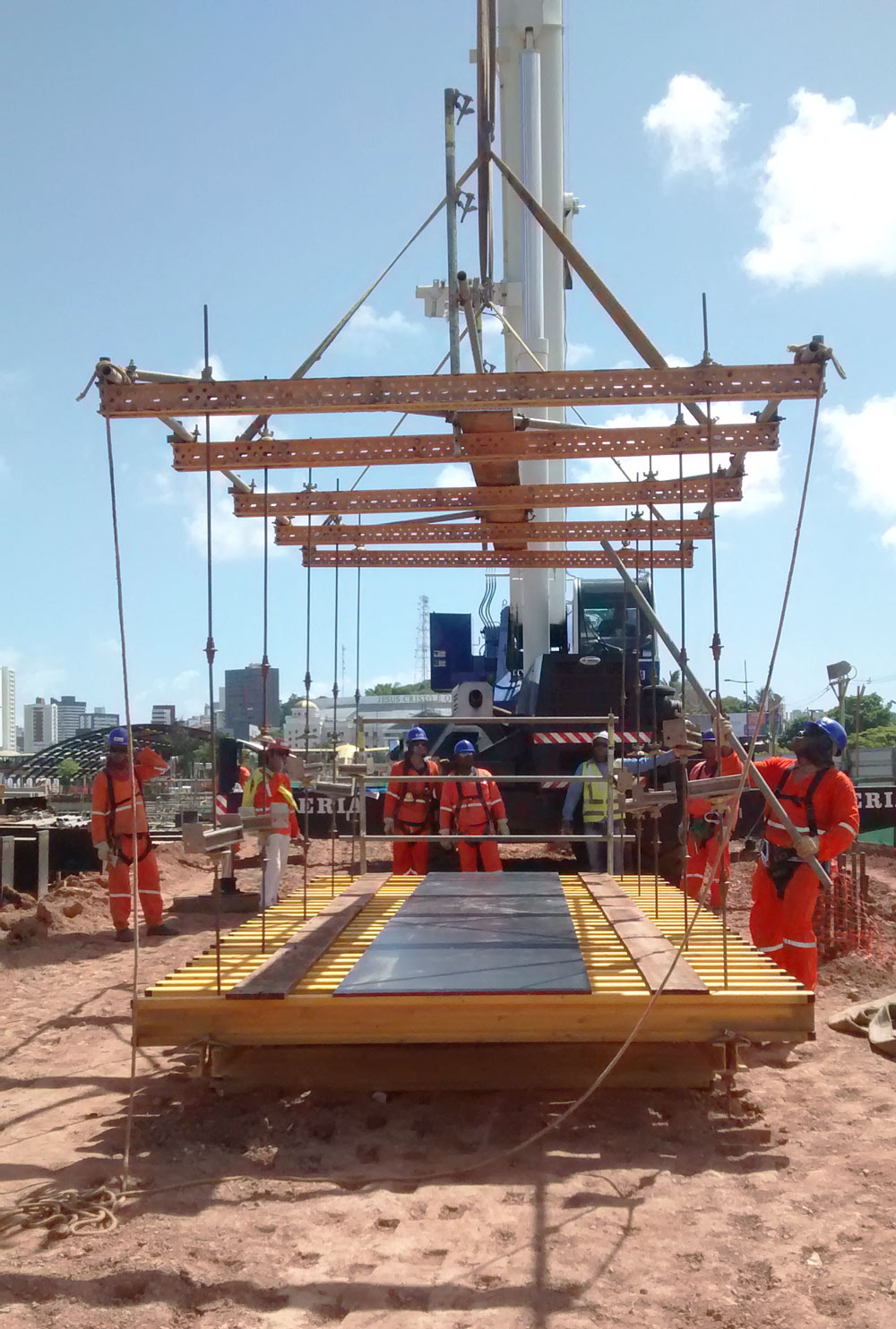 Se trata de la construcción de una estación de metro en un túnel, que requería un plazo muy corto de ejecución. Era necesario un método que posibilitara la realización de paredes laterales de grandes dimensiones y que dejara libre sólo una faja central de 4.50 m a ejecutar con posterioridad. Se considera la obra con mayor sección transversal de Brasil.