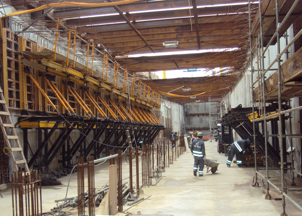 Además de mantener la máxima de rotación de sistemas, las columnas centrales del túnel con más de 5.5 m de altura debían realizarse en una sola tongada y disponer de un perfecto acabado. ENKOFORM VMK ha cumplido con todos los requisitos solicitados.