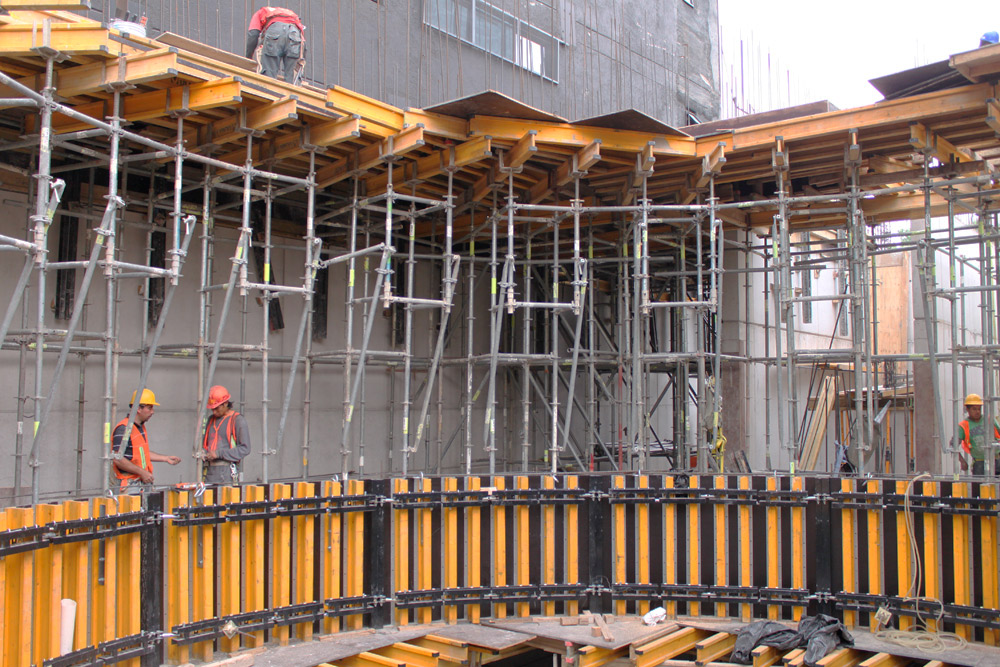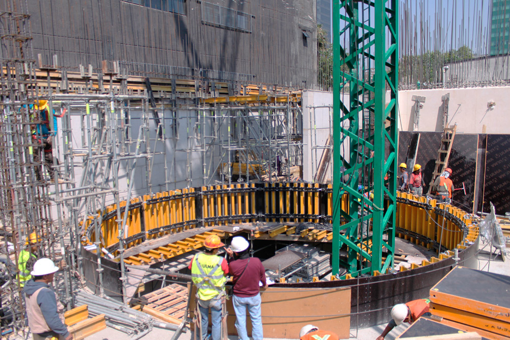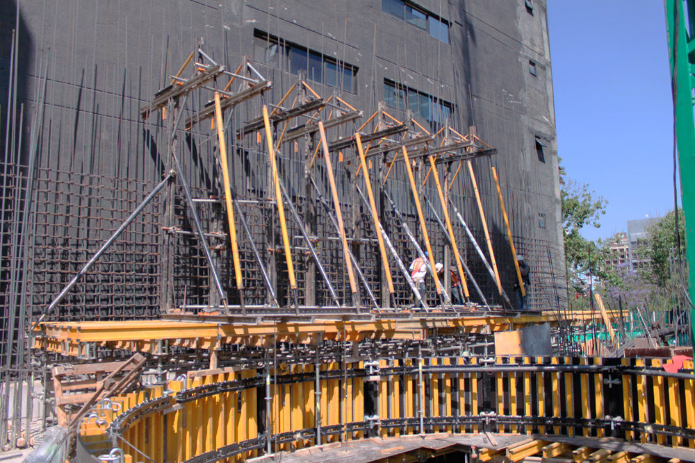 Para encofrar la trabe circular del núcleo central, se optó por la utilización del sistema de cimbra FLECTOR, gracias al cual se ha solucionado una de las área críticas del edificio, obteniendo un resultado óptimo.