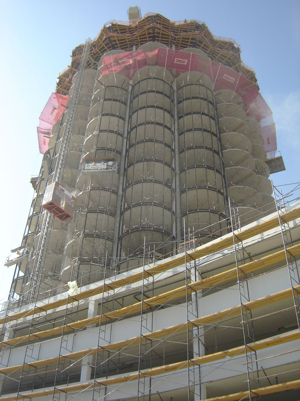 Dada la particular geometría de las torres, con salientes curvilíneos, se empleó en la ejecución de las losas el sistema ENKOFLEX con Puntal EP. Al estar formado por trabes independientes, este producto posee gran versatilidad por lo que se adaptó a la perfección a la fachada con formas ovaladas.