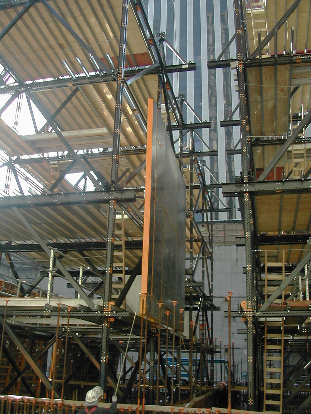 En un edificio de estas características y con multitud de materiales empleados, las labores de los distintos gremios necesitaron solaparse. El empleo del Sistema ATR incrementó la productividad reduciendo los tiempos de trabajo ya que facilitó realizar diferentes tareas de forma simultánea. El ATR, a diferencia de los convencionales, disminuye el tiempo destinado al empleo de grúas, además de proporcionar métodos sencillos y rápidos de actuación.