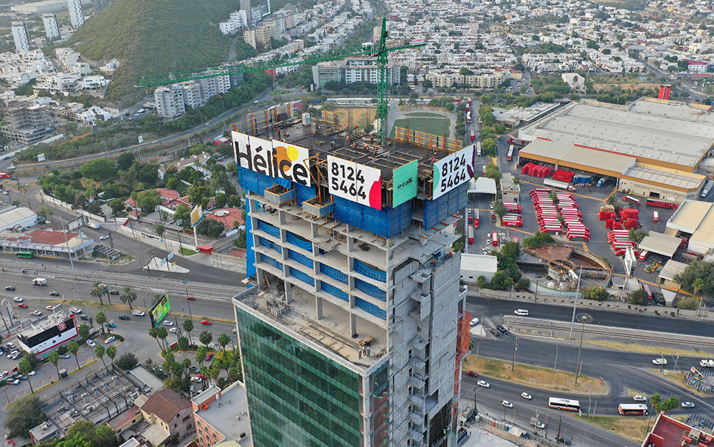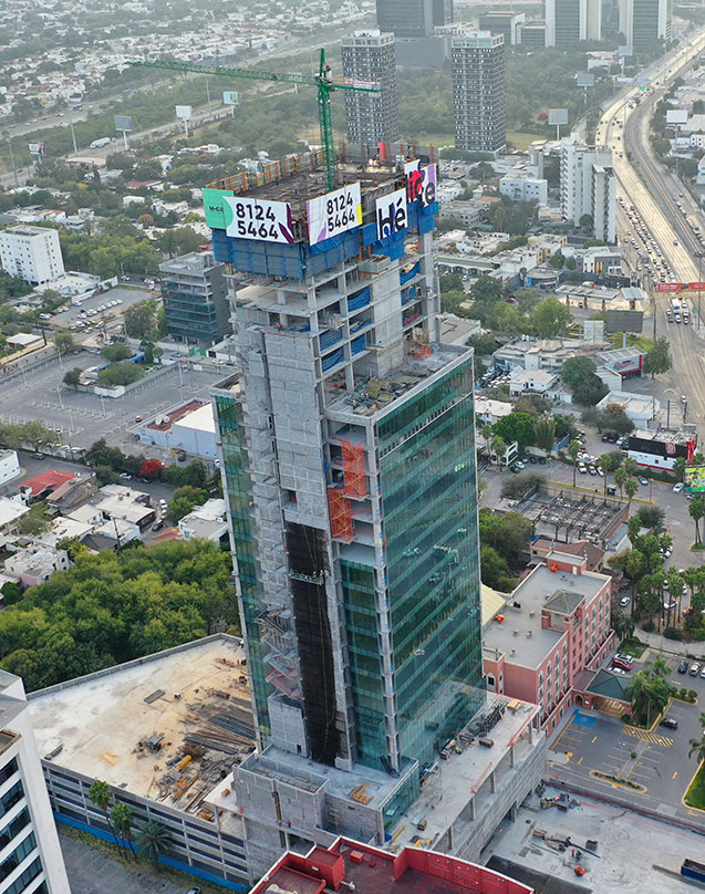 Uno de los principales retos que afrontó ULMA en el proyecto fue la demanda en seguridad y el cumplimiento del programa de obra. La protección del personal que labora en la construcción de la torre, así como también la prevención de caída de materiales y concreto hacia las edificaciones aledañas fueron los principales temas a resolver. Con el sistema de protección perimetral auto-trepante HWS, se lograron resolver dichos retos. Además, el sistema HWS permite la colocación de publicidad para el proyecto, el cual puso a la vista del público, de toda la zona metropolitana de Monterrey en sus principales avenidas.