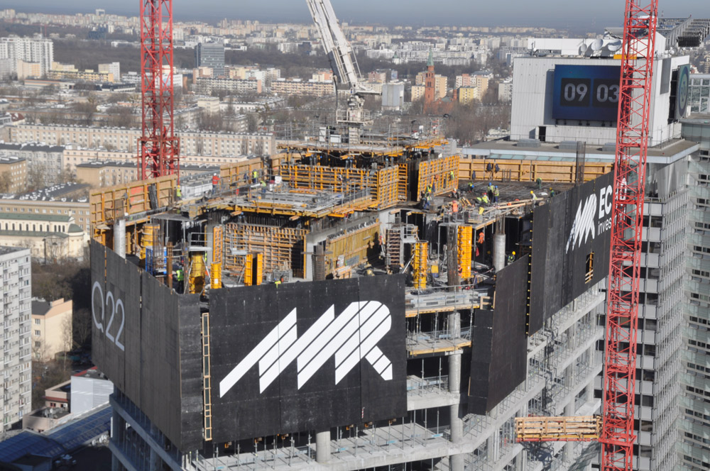 Los retos a los que ULMA se enfrenta son cada día más altos, como los que ha supuesto la construcción del rascacielos Q22, en el centro de la capital polaca. Una torre de 155 m de altura construida en tan sólo 20 meses.