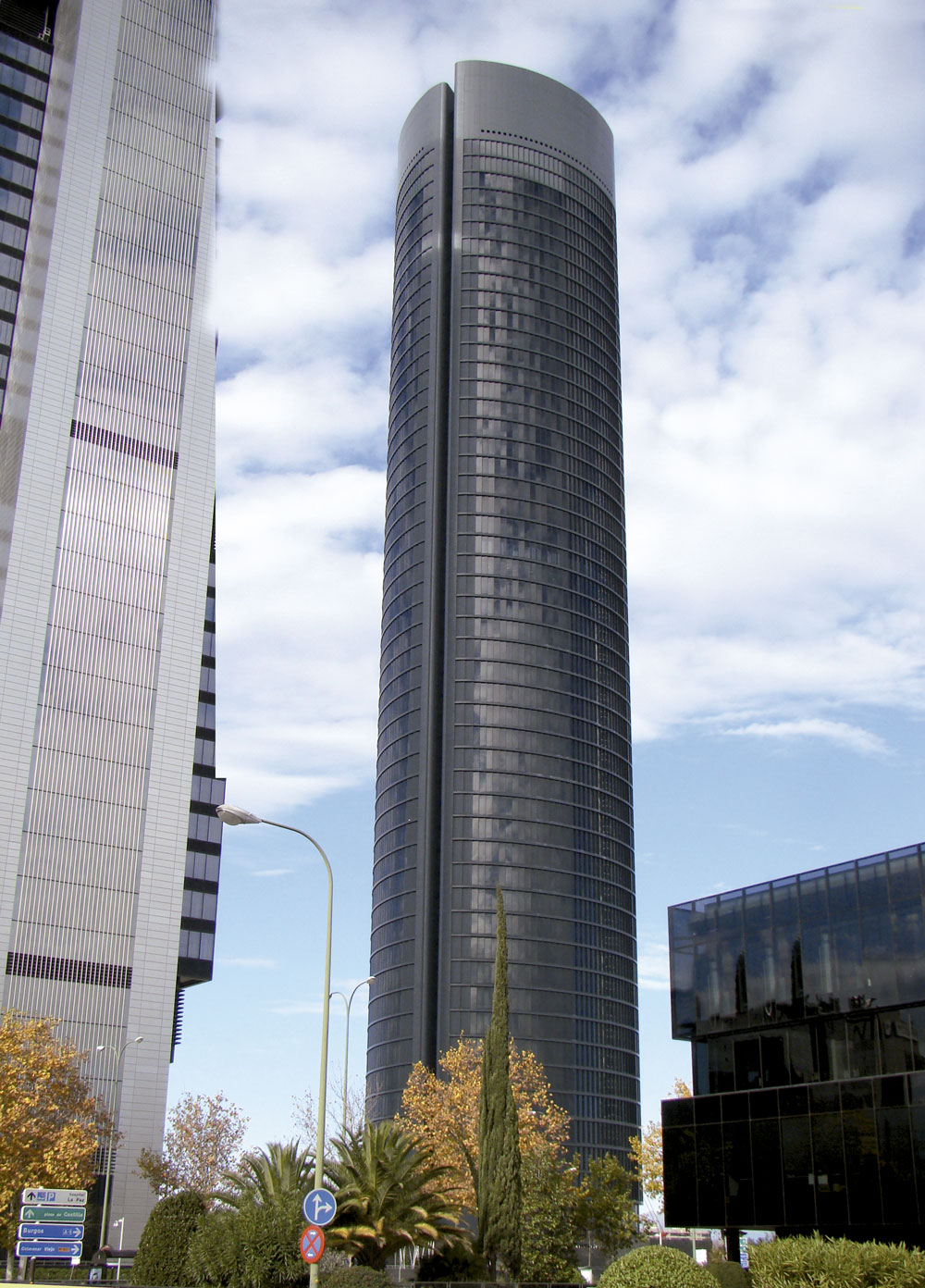 El estudio de arquitectura dirigido por Carlos Rubio Carvajal y Enrique Álvarez -Sala Walter- diseñó este rascacielos para usos múltiples. En las 33 primeras plantas, el edificio alberga un hotel de cinco estrellas, gran lujo, con 500 habitaciones, mientras que el resto está destinado a oficinas.