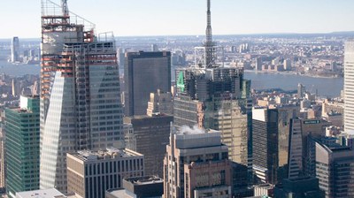 Los 300 m de altura y sus 200,000 m² conforman una torre de cristal, sede del Banco de América.