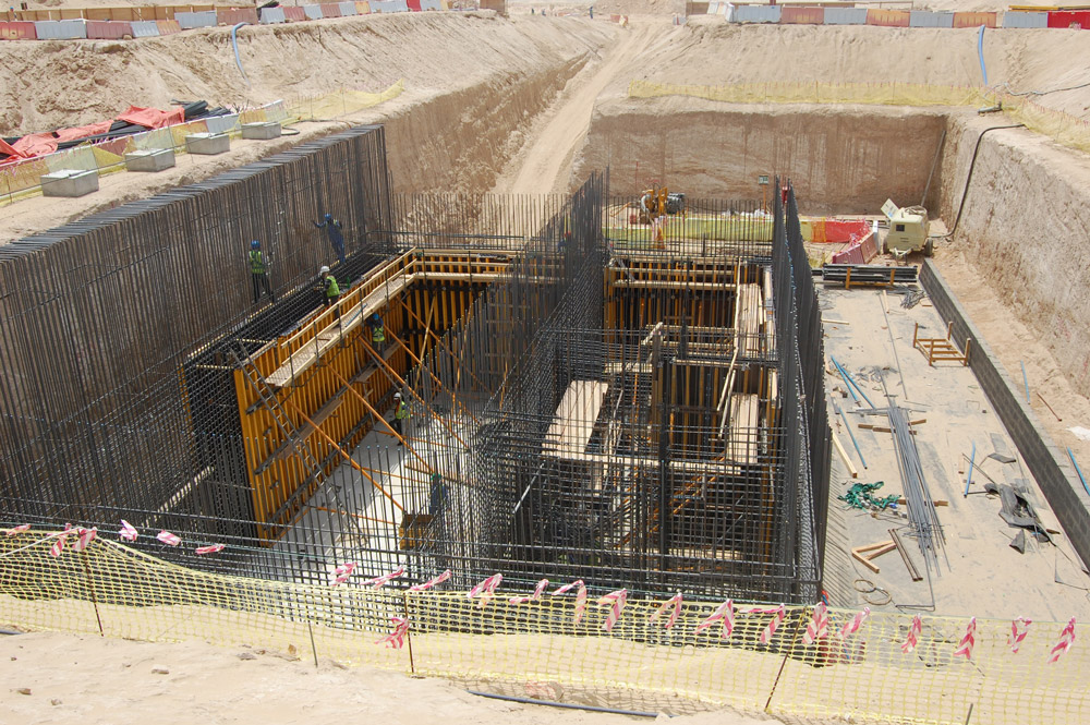 La Estación de Jebel Ali en Dubai cuenta con un área de 300 m2, muros con alturas de entre 2.2 m y 7,3 m, y losas con 25 cm de espesor.