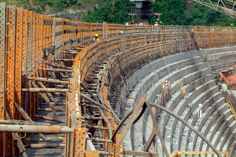 Con gran experiencia en múltiples proyectos, ULMA, ideó una solución de cimbra única para la construcción de esta presa tipo RCC.