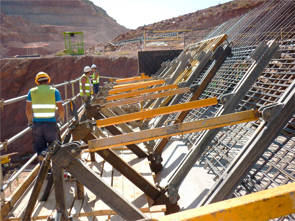 La cámara de válvulas de 55 metros de anchura se ha realizado mayoritariamente con el Cimbra modular ORMA, con la Consola de trepado 2000 y con las cerchas UCAB-EUC. En las losas de poco espesor se ha utilizado el Cimbra de losa RAPID y el Cimbra de vigas ENKOFLEX y en las losas de mayor potencia, en cambio, (espesor mayores de 70 cm.) el Cimbra de losa ENKOFORM H-120.