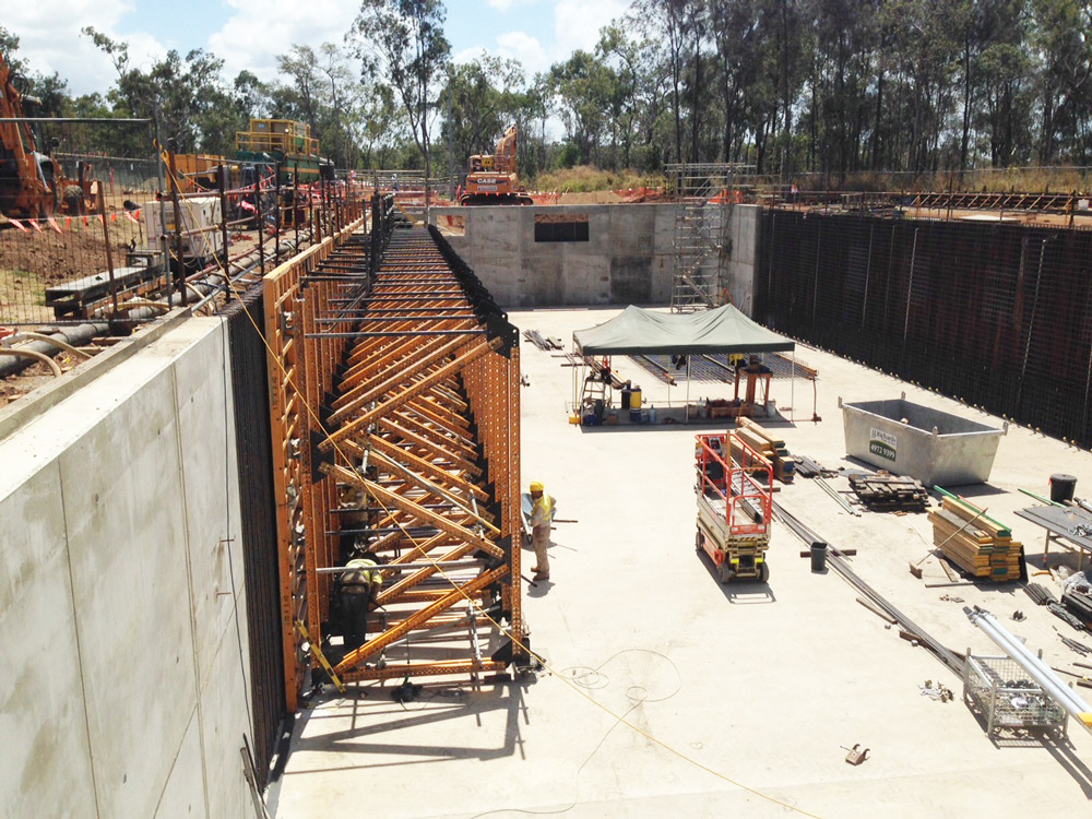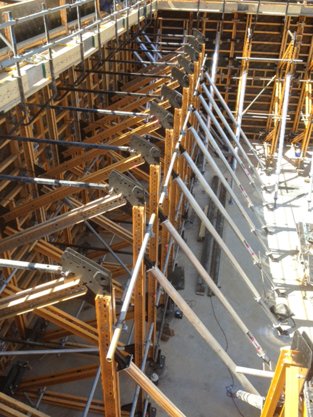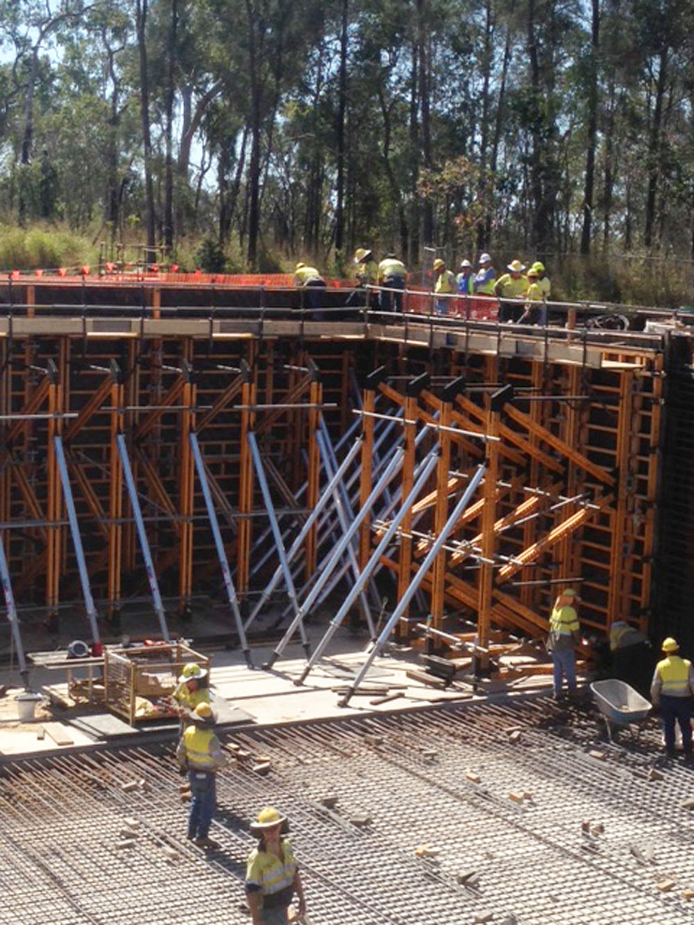 Entre los continuos desafíos que implica un proyecto de este tipo, cabe destacar el diseño del cimbra. El sistema debía tener en cuenta las cargas propias del cimbra así como las del colado sobre una losa de 300 mm y pilas. El diseño ha permitido el colado en una sola tongada de 5,4 m y reduciendo el número de juntas en un depósito rectangular.