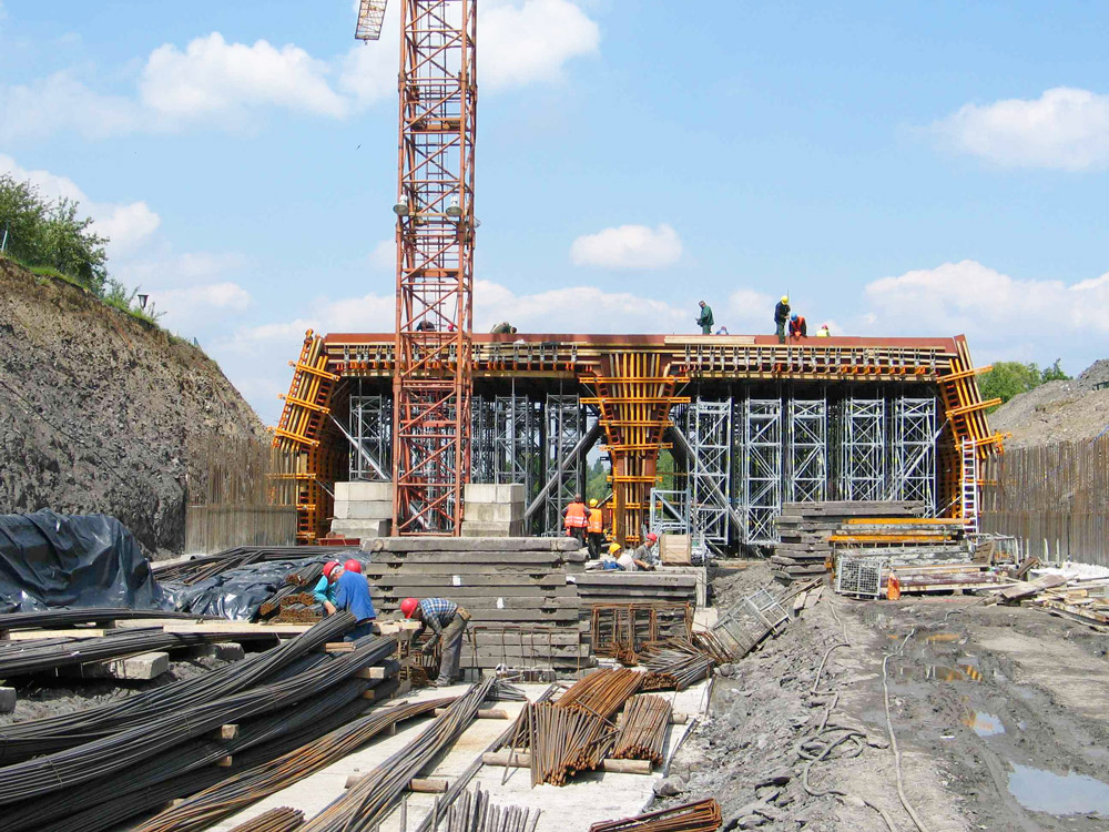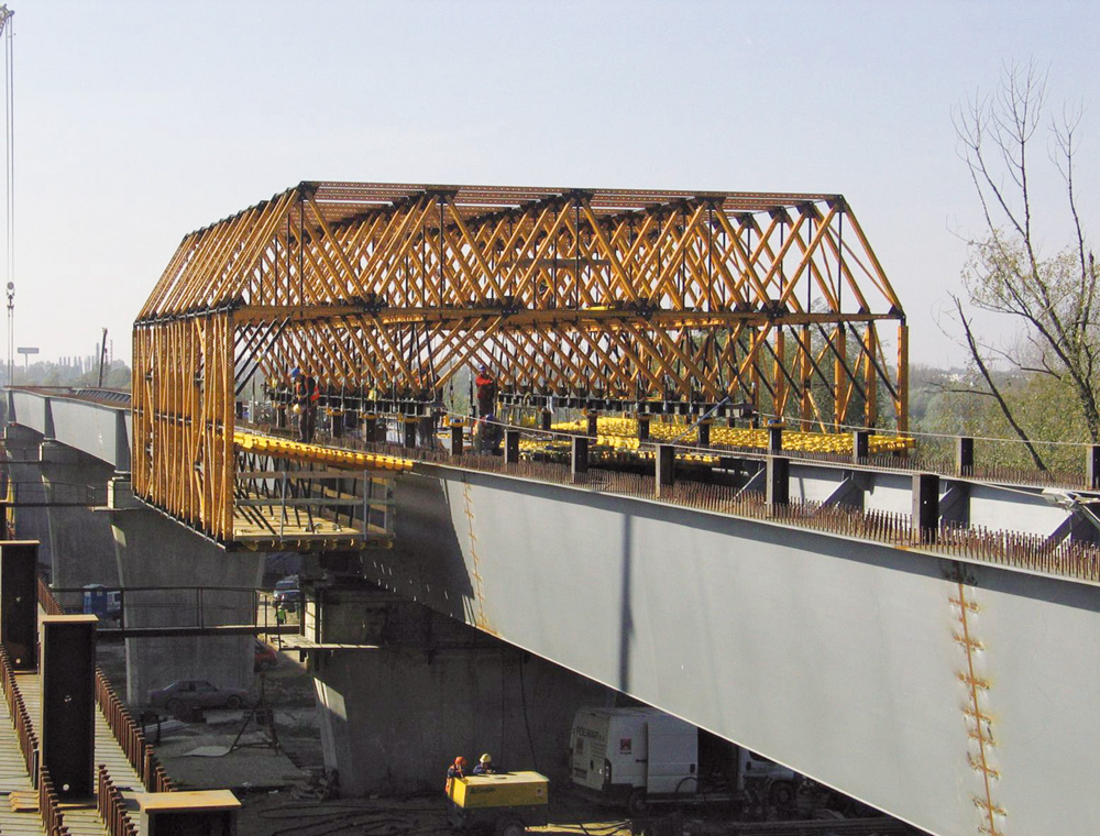 El paso WS10, sobre el río Biala, sortea 24 m de vano con perfiles apoyados sobre torres MK, adaptables a geometrías específicas. Ante las características de la estructura, el colado se realizó en 20 fases (5 por cada carril). La mayor sección del tablero ejecutada fue de 159.3 m y 60 m la más corta.