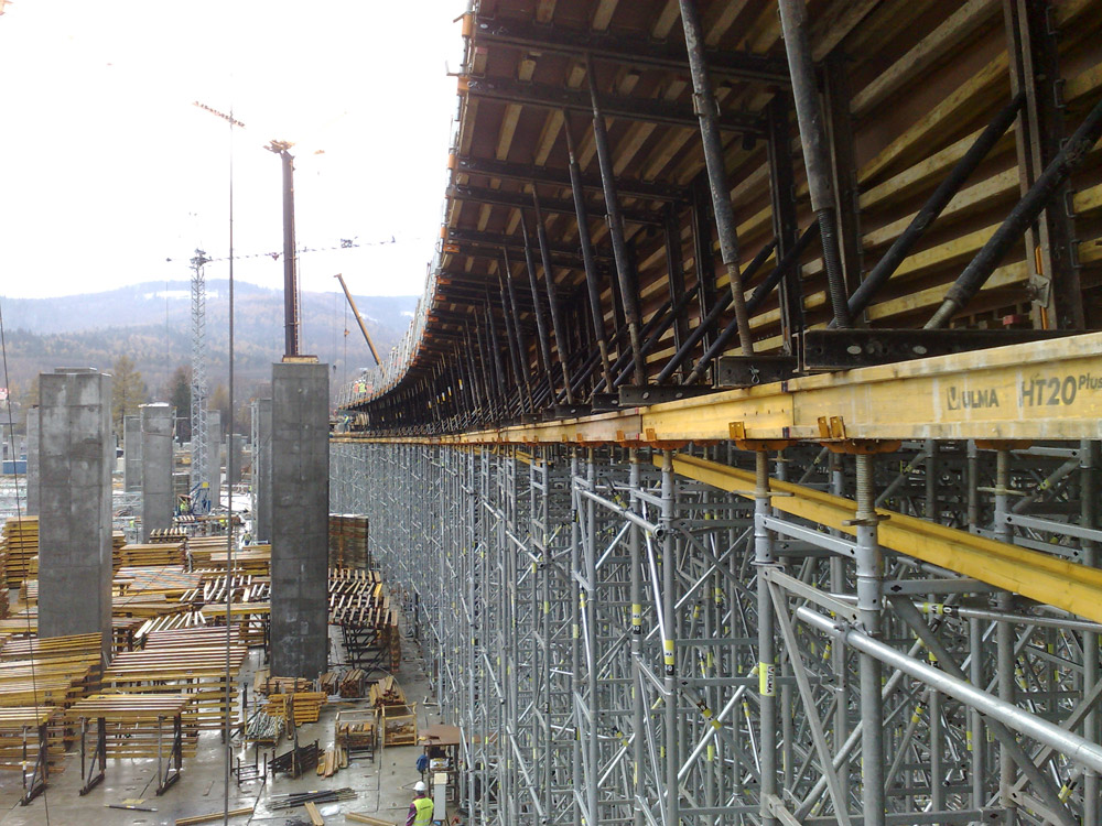 Como cimbra del tablero se empleó el sistema ENKOFORM HMK, adaptable a cualquier sección con piezas estándares. Como apoyo, la Cimbra T-60 agilizó el proceso constructivo además de transmitir las cargas con total seguridad, a más de 15 m de altura.