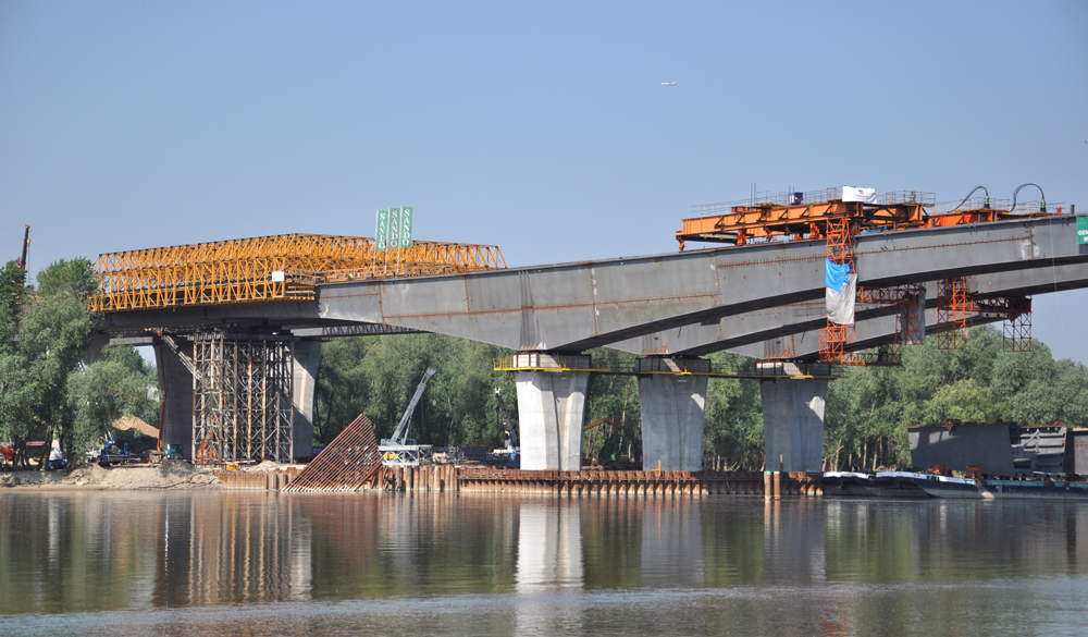 Con 795 m de longitud, el puente incluye tres calzadas independientes: dos de 13.36 m de anchura, para el tráfico de vehículos, y una tercera de 12.76 m, para tranvía, peatones y bicicletas. El puente cuenta con 10 vanos de entre 45 y 160 m de longitud.