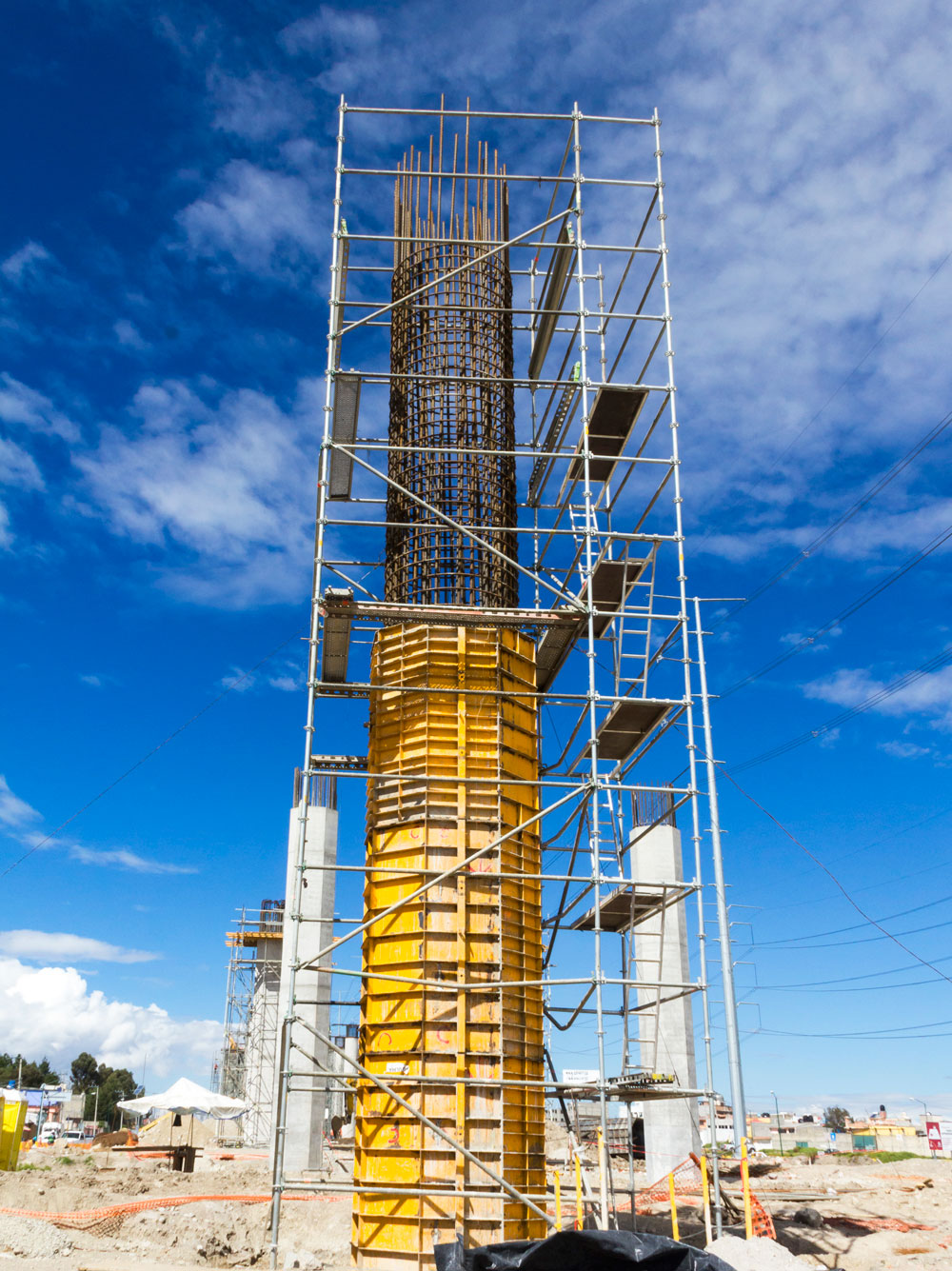 Para la ejecución de las columnas tipo “Delta” ULMA suministró el Sistema MK, polivalente y compuesto sólo por elementos estándares, que ha sido diseñado para adaptarse a un gran número de aplicaciones que requieran gran capacidad portante, típicas de Obra Civil, como el caso que nos ocupa. El elemento común en todas estas aplicaciones es la Riostra MK, combinada con accesorios propios del sistema y con otros estándares del portafolio de ULMA. Se garantizó la seguridad por medio de plataformas y barandillas en cualquier punto del sistema y escaleras de acceso.