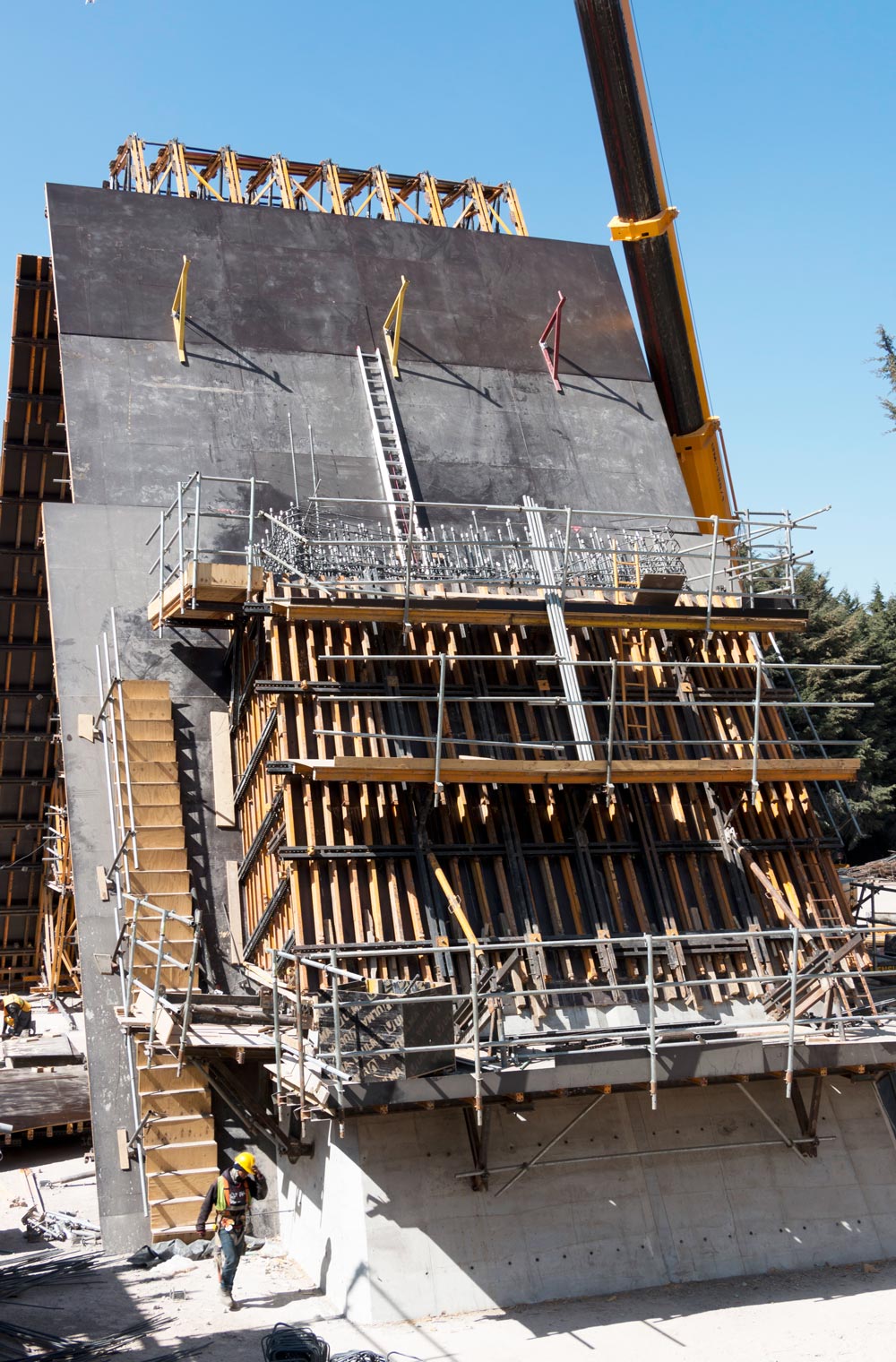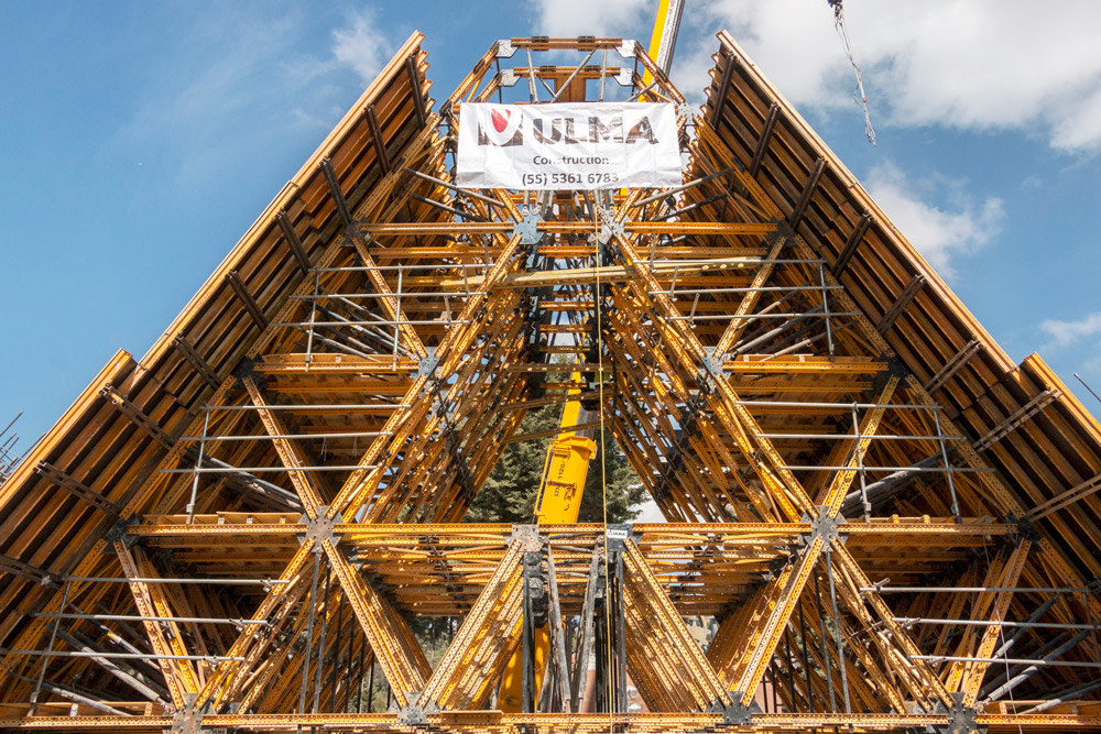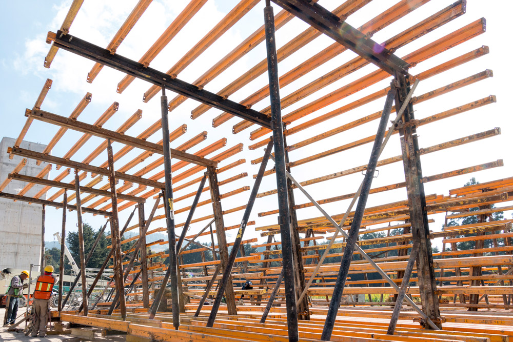 Para la ejecución de las columnas, octogonales macizas y columnas huecas, ULMA desarrolló una cimbra especial con apoyo del Andamio Multidireccional BRIO, un sistema que brinda toda la seguridad a los trabajadores, el cual se pudo trasladar sin necesidad de desmontarlo por completo, mejorando el rendimiento de los procesos de colado. Para las columnas octogonales se empleó el Cimbra de Columna Especial CLR. Las columnas huecas, de sección constante y variable, se ejecutaron con la consola CR-250, la Plataforma Interior KSP y el Cimbra de Vigas ENKOFORM V-100.