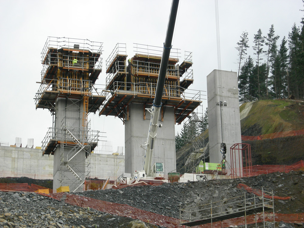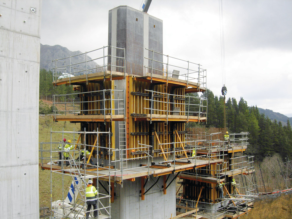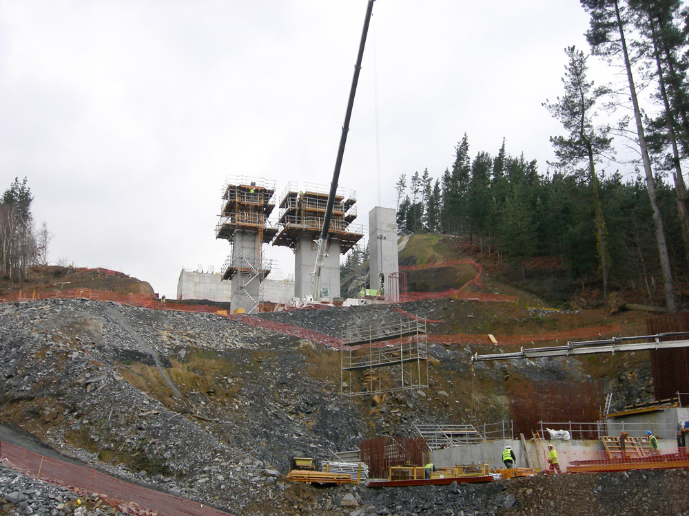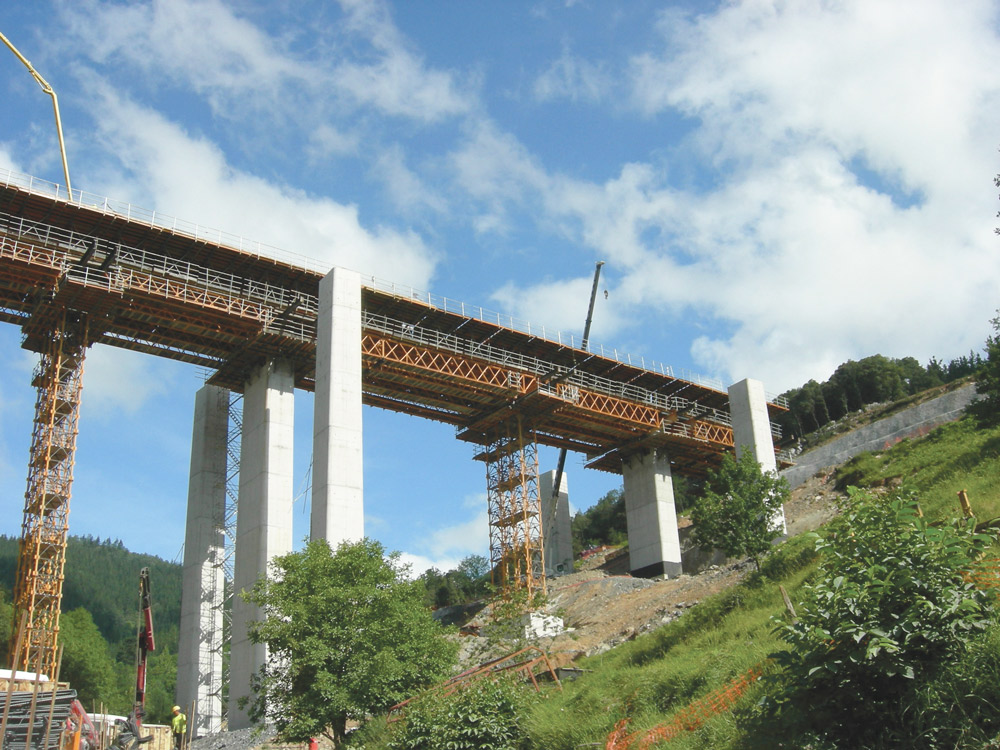 El tablero de sección cajón, con canto de 3,64 m, se ejecuta en dos fases, mediante el cimbra ENKOFORM HMK. En la primera, se realiza el fondo y los hastiales y en la segunda, el techo y las alas.