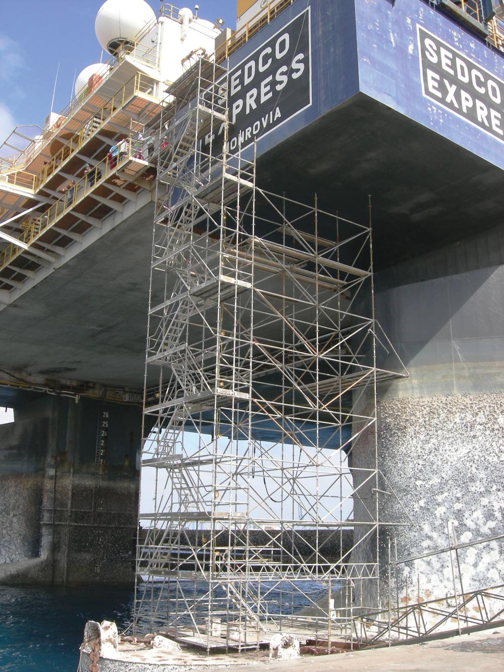 Mantenimiento de plataformas petrolíferas que realizan las paradas técnicas en el Puerto de La Luz y Las Palmas (Gran Canaria) procedentes de yacimientos del sur de África. En función del estado de la plataforma y del tipo de trabajos requerido, estas paradas duran entre 2 y 4 meses.