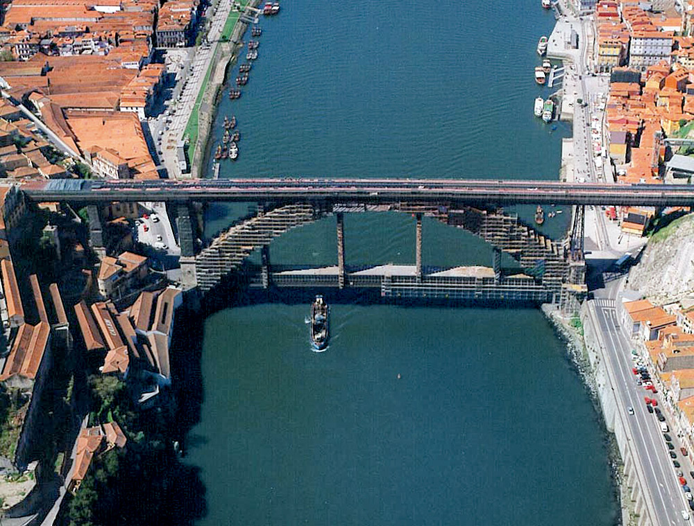 De los numerosos puentes de Oporto es el más conocido e impresionante de la ciudad. Construido sobre el río Duero une la ribera de la localidad con el muelle de Vilanova de Gaia. En la actualidad forma parte del Centro Histórico de Oporto declarado Patrimonio de la Humanidad por la UNESCO.
