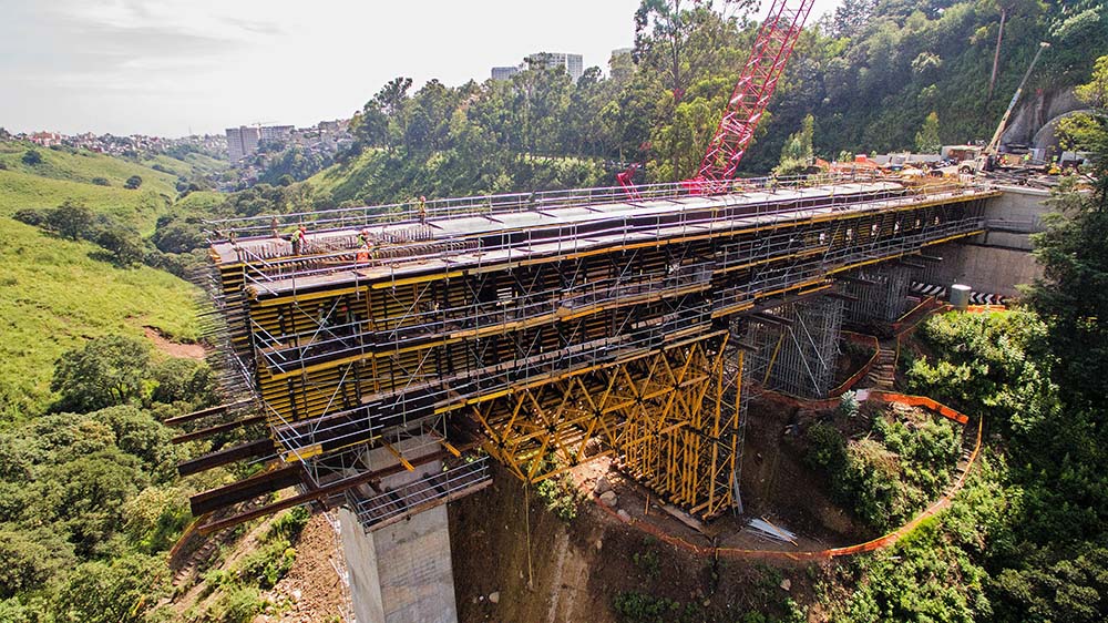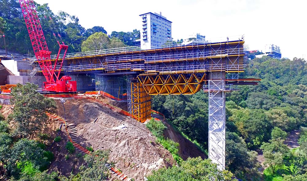 El Sistema MK ha vuelto a demostrar sus múltiples aplicaciones en forma de carro de avance, cimbra y cercha de gran carga, así como cimbra. Un solo sistema para todo un proyecto.