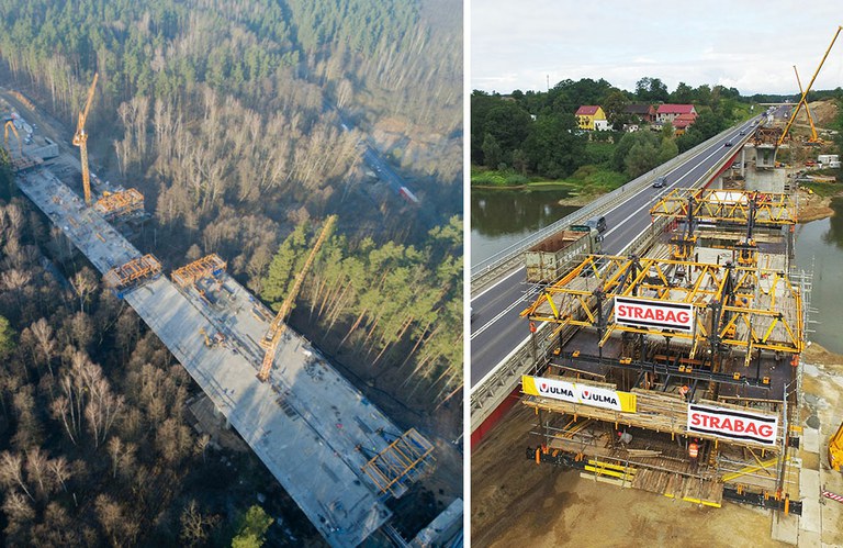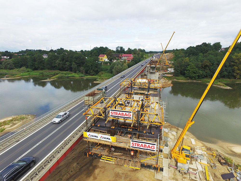 El viaducto de 220 m de longitud y doble calzada sobrevuela el valle del Drwęca. En el tramo ubicado sobre el cauce del río y con una longitud de vano de 100 m, se han empleado 8 carros CVS de forma simultánea. El tablero presenta una sección transversal de cajón simple con hastiales verticales y canto variable, 5,80 m sobre la pila y 2,35 m en la dovela de cierre. El vano central se ha completado con 20 dovelas de longitudes variables de 4 a 5 m a medida que se reducía el canto.