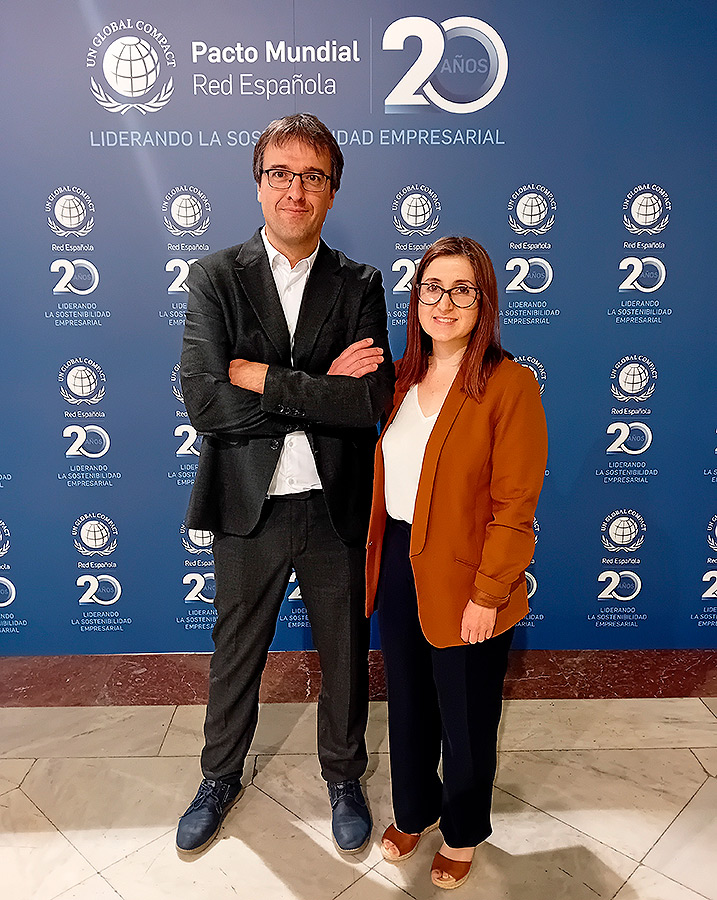 El Director de Sostenibilidad, Igor Odriozola y la Gestora de ESG, Leire Martiarena han asistido desde ULMA al acto organizado por la Red Española del Pacto Mundial de las Naciones Unidas.